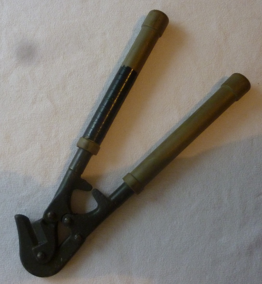 Hier mal ein Werkreug aus Bundeswehrbeständen: Ein Bolzenschneider. Er gehörte, wenn ich mich recht entsinne, u.a. zur Bordausstattung von Panzern.