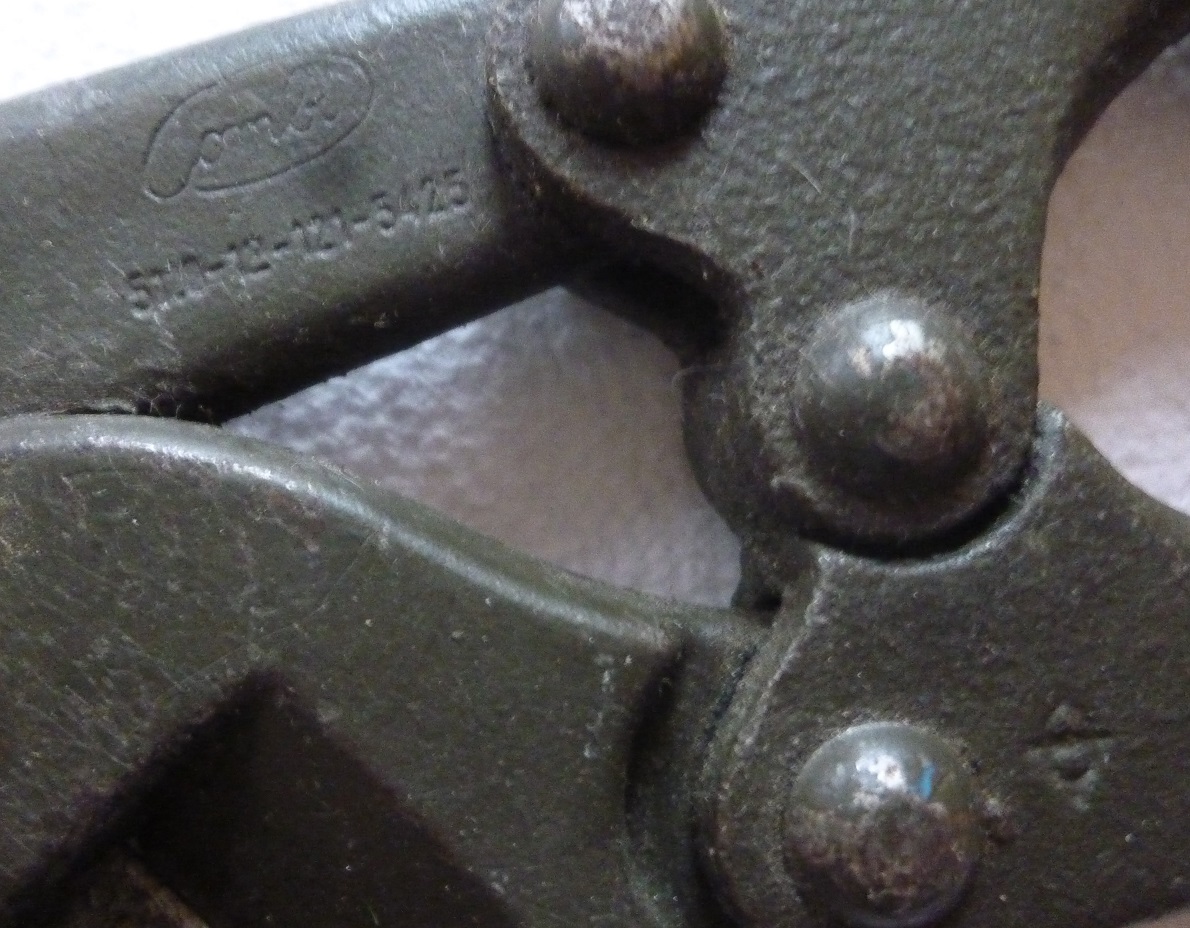 Das Teil ist zwar nicht von meinem Opa (Er war erstens bei der Infanterie und zweitens im ersten Weltkrieg, wo die Panzer noch in den Kinderschuhen steckten), hat aber auch schon ein paar Jährchen auf dem Buckel. Ist auch kein Souvenir, sondern nach wie vor ein Werkzeug, das in Gebrauch ist. Aufgrund seiner recht kurzen Arme ist er aber für sehr dicke Metallteile ungeeignet.