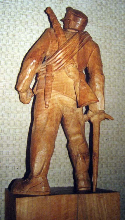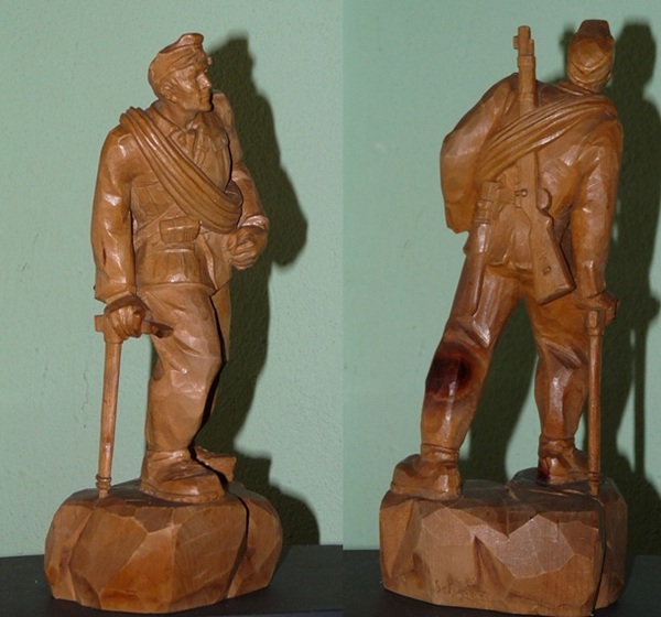Holzgeschnitzte Figur eines Gebirgsjägers, ca. 60 cm hoch