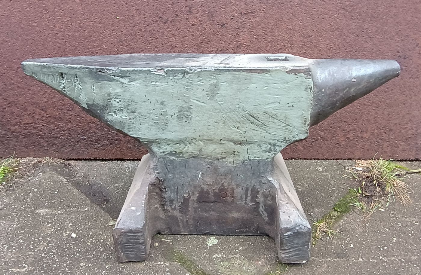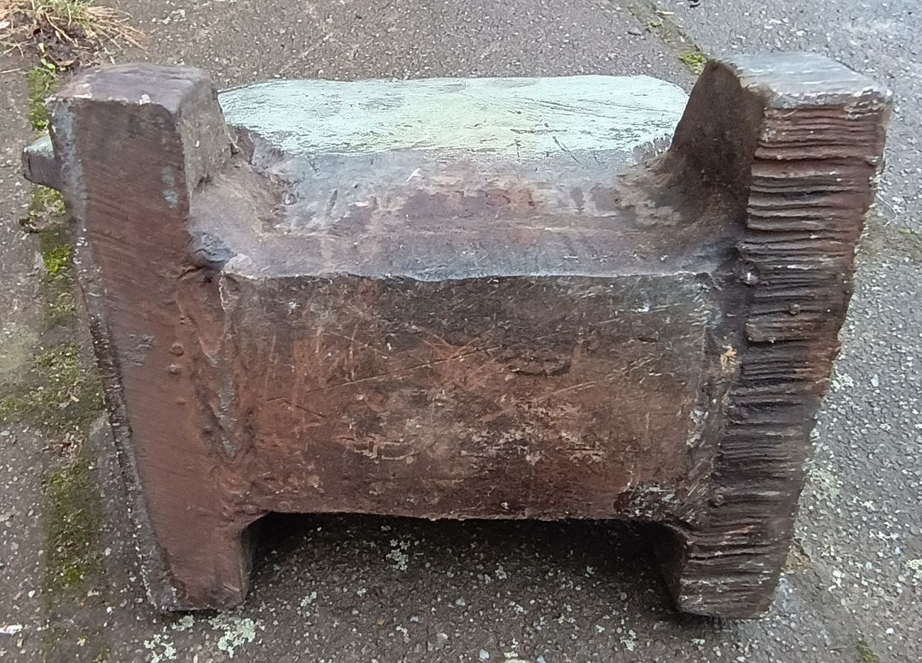Wie mein anderer, hier vorgestellter Amboss, stammt auch dieser mit hoher Wahrscheinlichkeit aus DDR-Fertigung. Aus geschmiedeten Platten herausgeschnitten, zusammen geschweißt und mit gehärteter Bahn versehen.