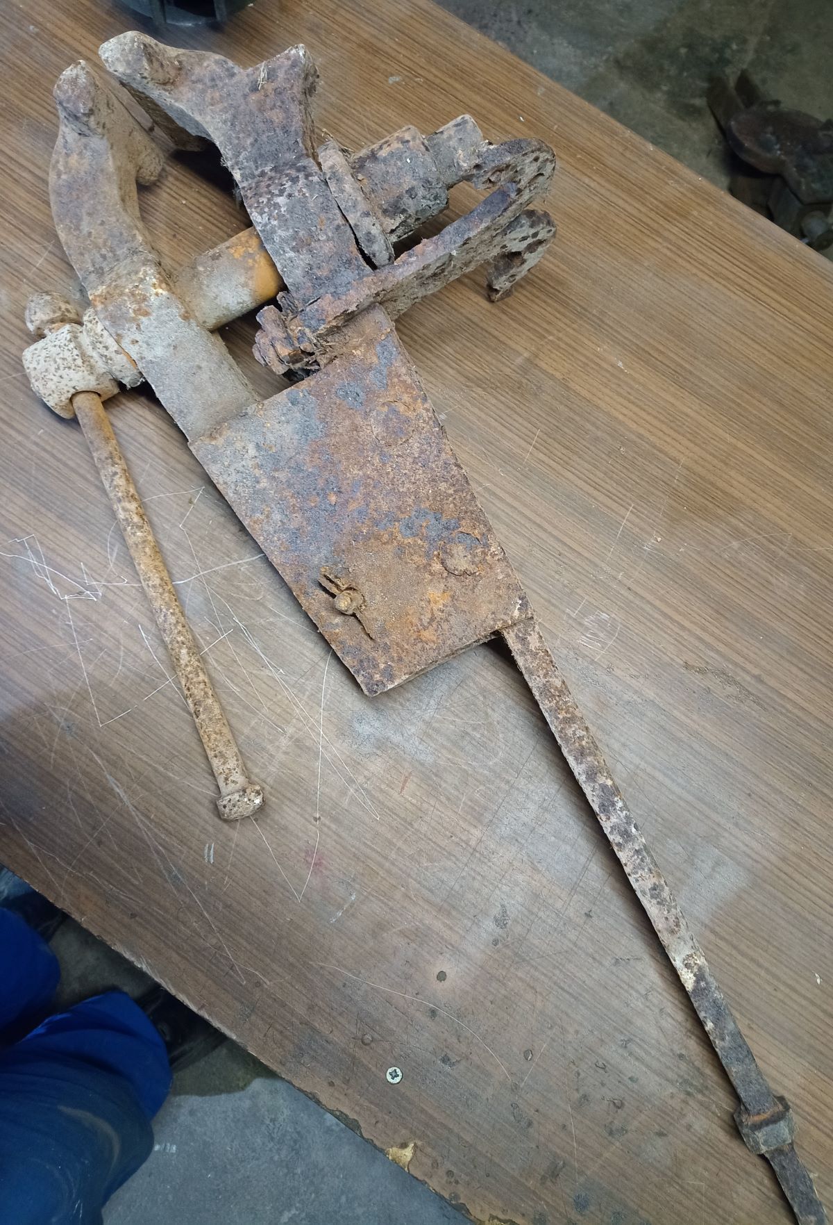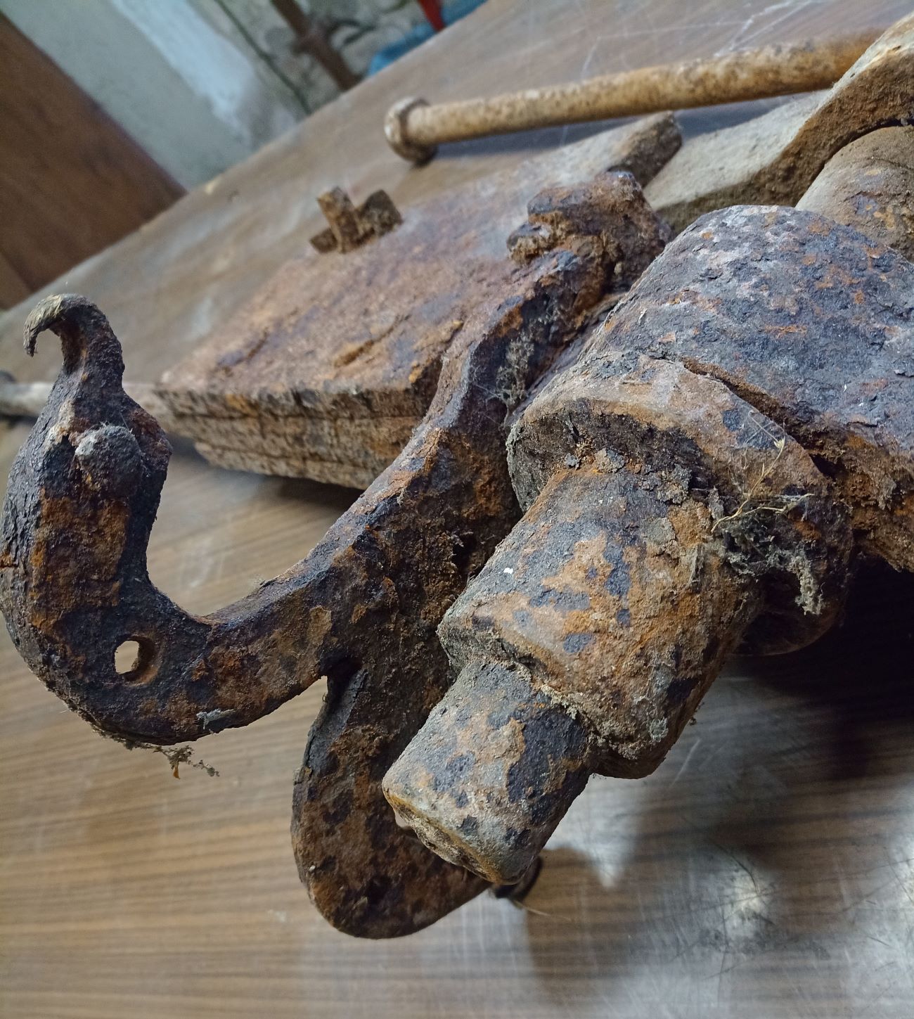 Die Teile wurden einst geschmiedet. Ich schätze mal so vor 90 Jahren+/-. Über den weiteren Verlauf werde ich dann mal berichten. Aufgrund der stark korrodierten Oberfläche wird die Wiederschönmachung etwas mehr Zeit beanspruchen als bei den kleineren, oben gezeigten Schraubstücken.