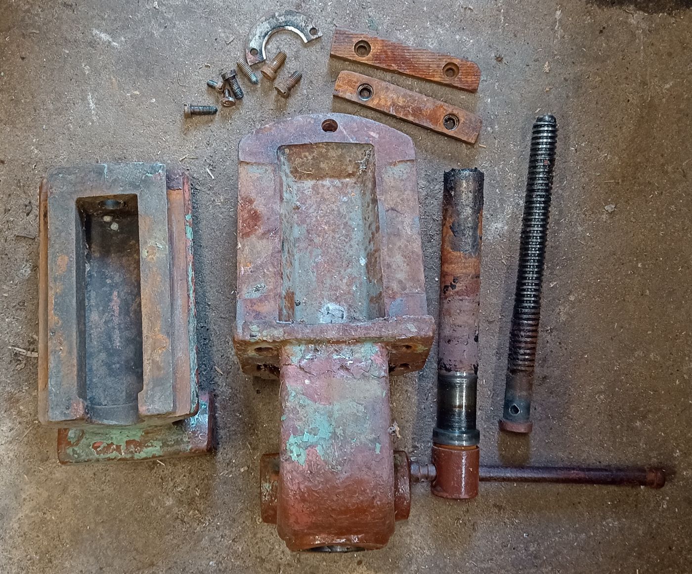 Ich habe fünf Parallelschraubstöcke unterschiedlicher Art in Gebrauch. Dieser hier kam zuletzt hinzu. Er gehörte dem Vater einer Freundin. Seit er 1990 herum mit nur 50 Lebensjahren starb, blieb er im Gartenschuppen stehen. Über die Jahre wollten ihn schon einige Bekannte der Freundin haben, teilweise sogar, um ihn auf den Schrott zu bringen. Das lehnte sie stets ab und wartete auf den Augenblick, jemanden zu vertrauen, der ihn wieder herrichtet und seiner ursprünglichen Bestimmung zuführt. Nun bin ich es geworden.