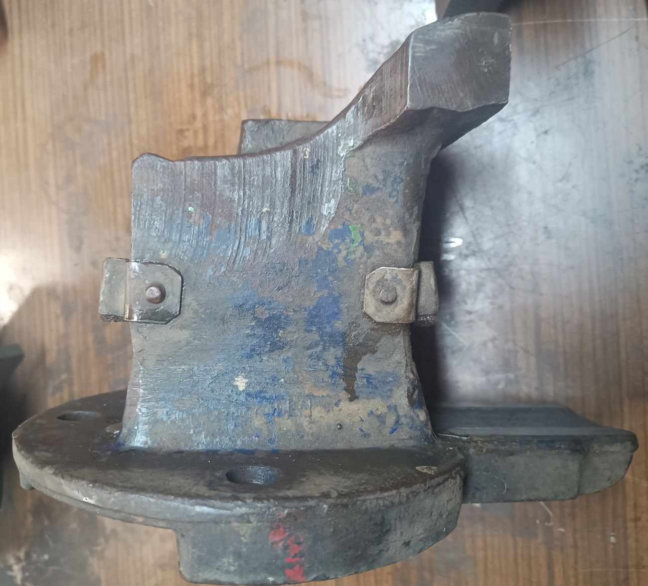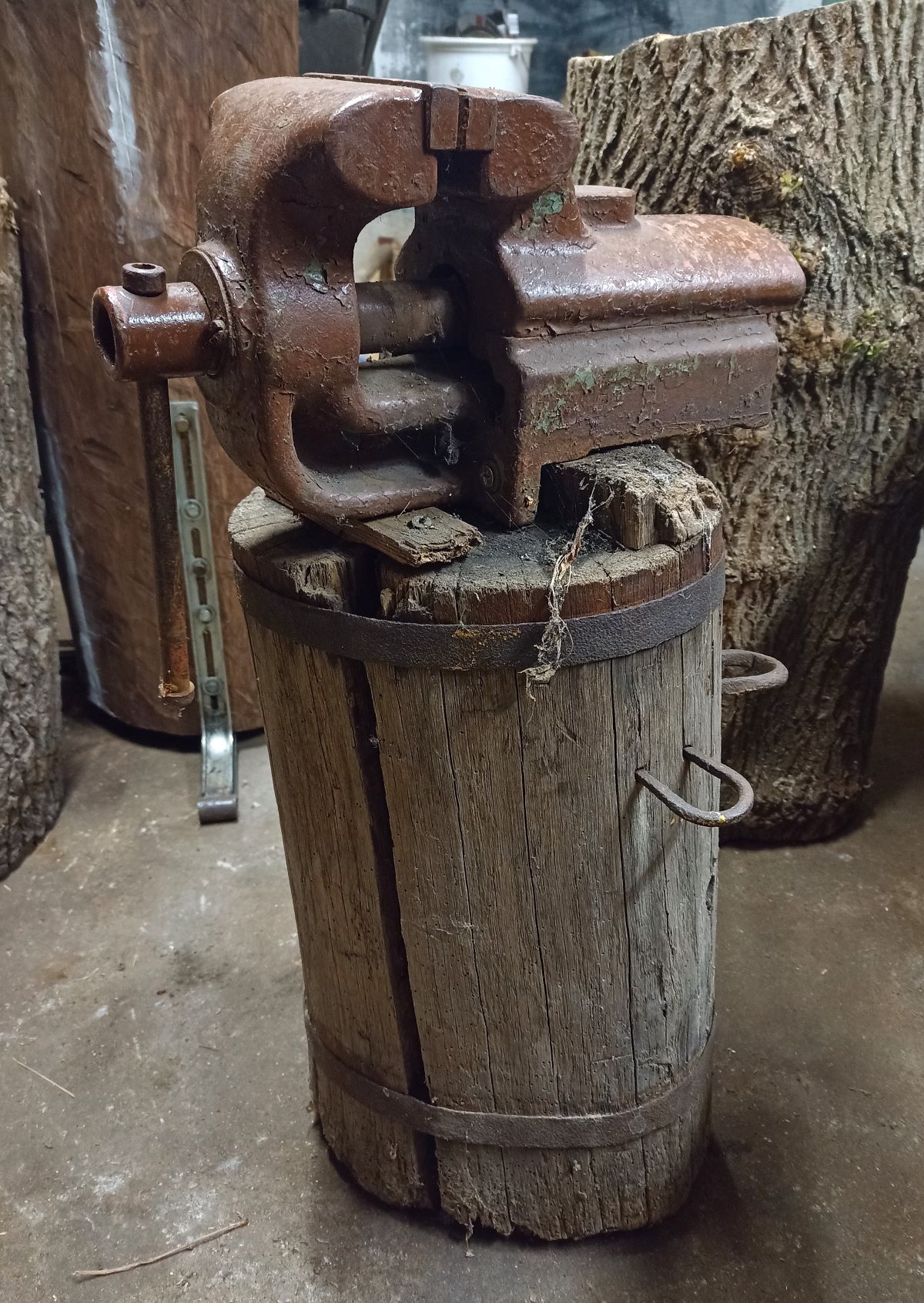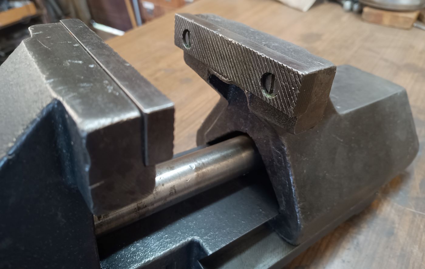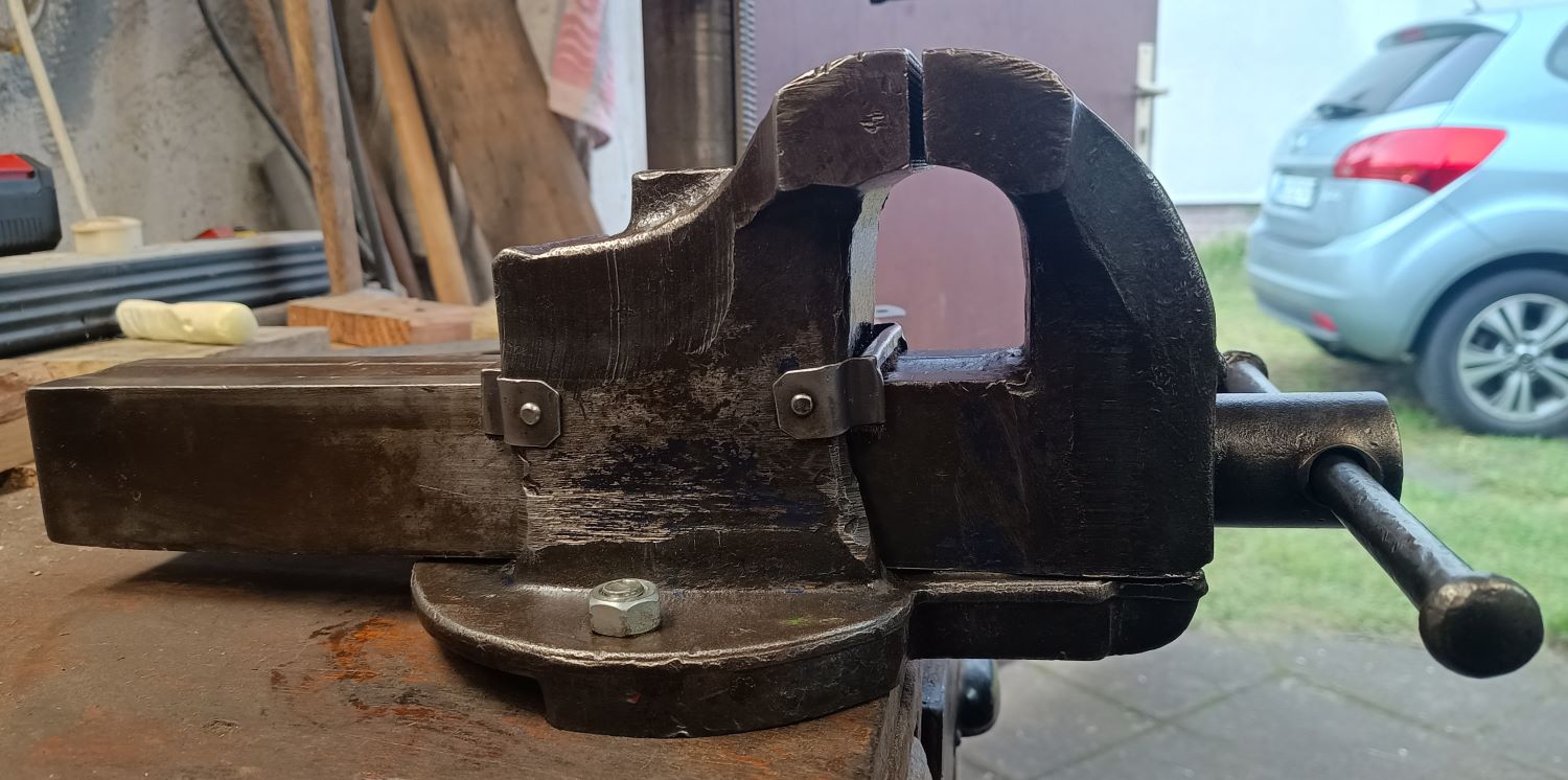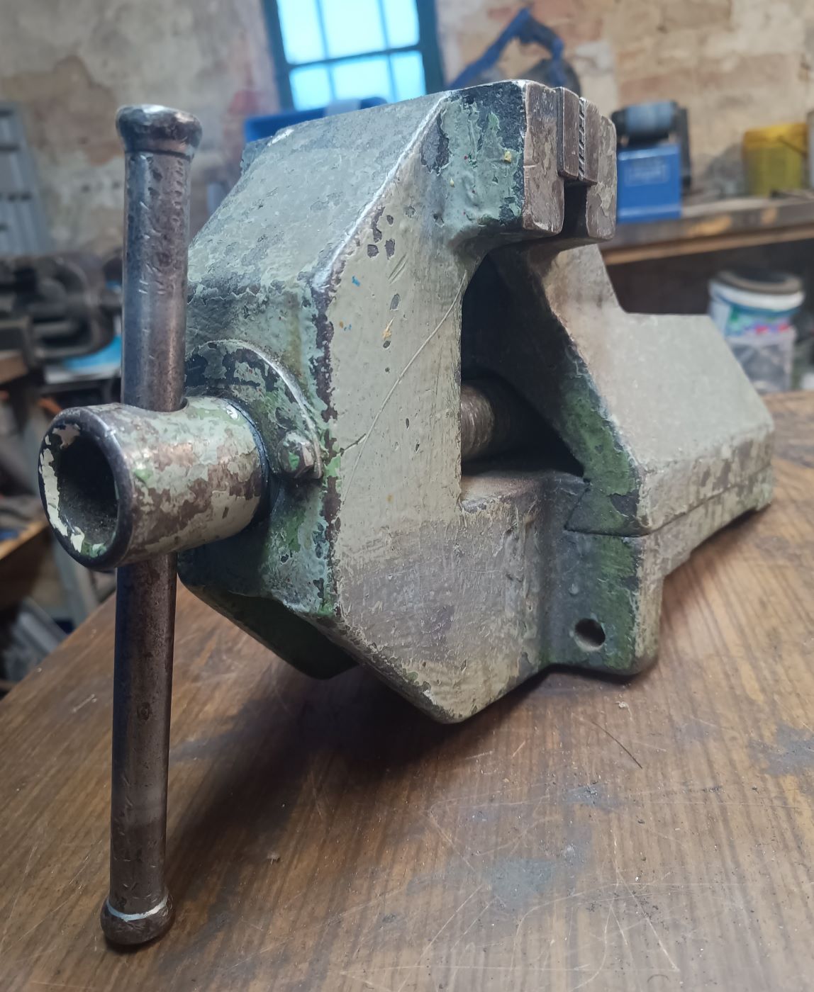 Ich habe fünf Parallelschraubstöcke unterschiedlicher Art in Gebrauch. Dieser hier kam zuletzt hinzu. Er gehörte dem Vater einer Freundin. Seit er 1990 herum mit nur 50 Lebensjahren starb, blieb er im Gartenschuppen stehen. Über die Jahre wollten ihn schon einige Bekannte der Freundin haben, teilweise sogar, um ihn auf den Schrott zu bringen. Das lehnte sie stets ab und wartete auf den Augenblick, jemanden zu vertrauen, der ihn wieder herrichtet und seiner ursprünglichen Bestimmung zuführt. Nun bin ich es geworden.