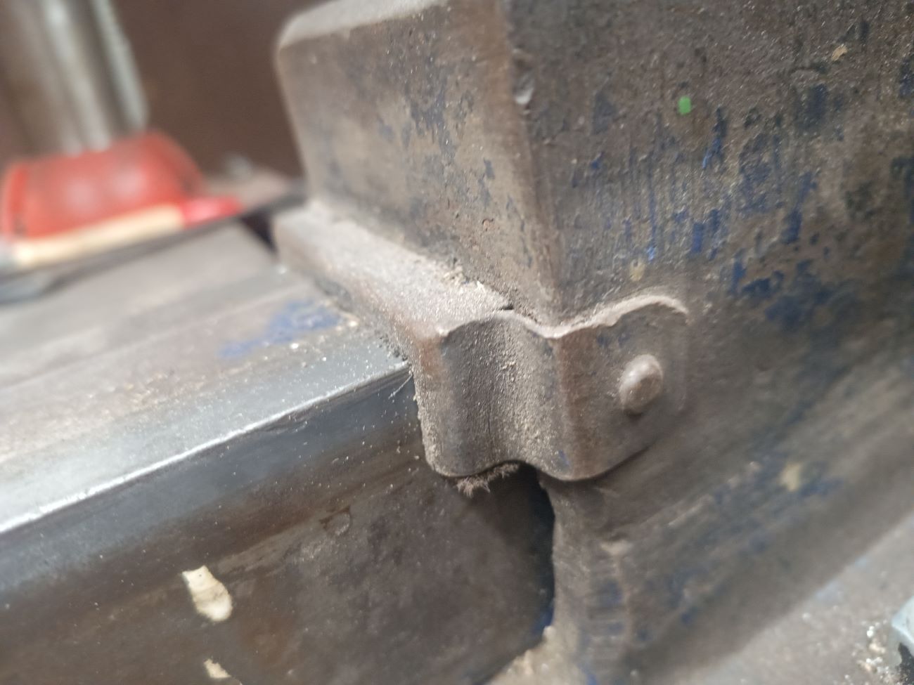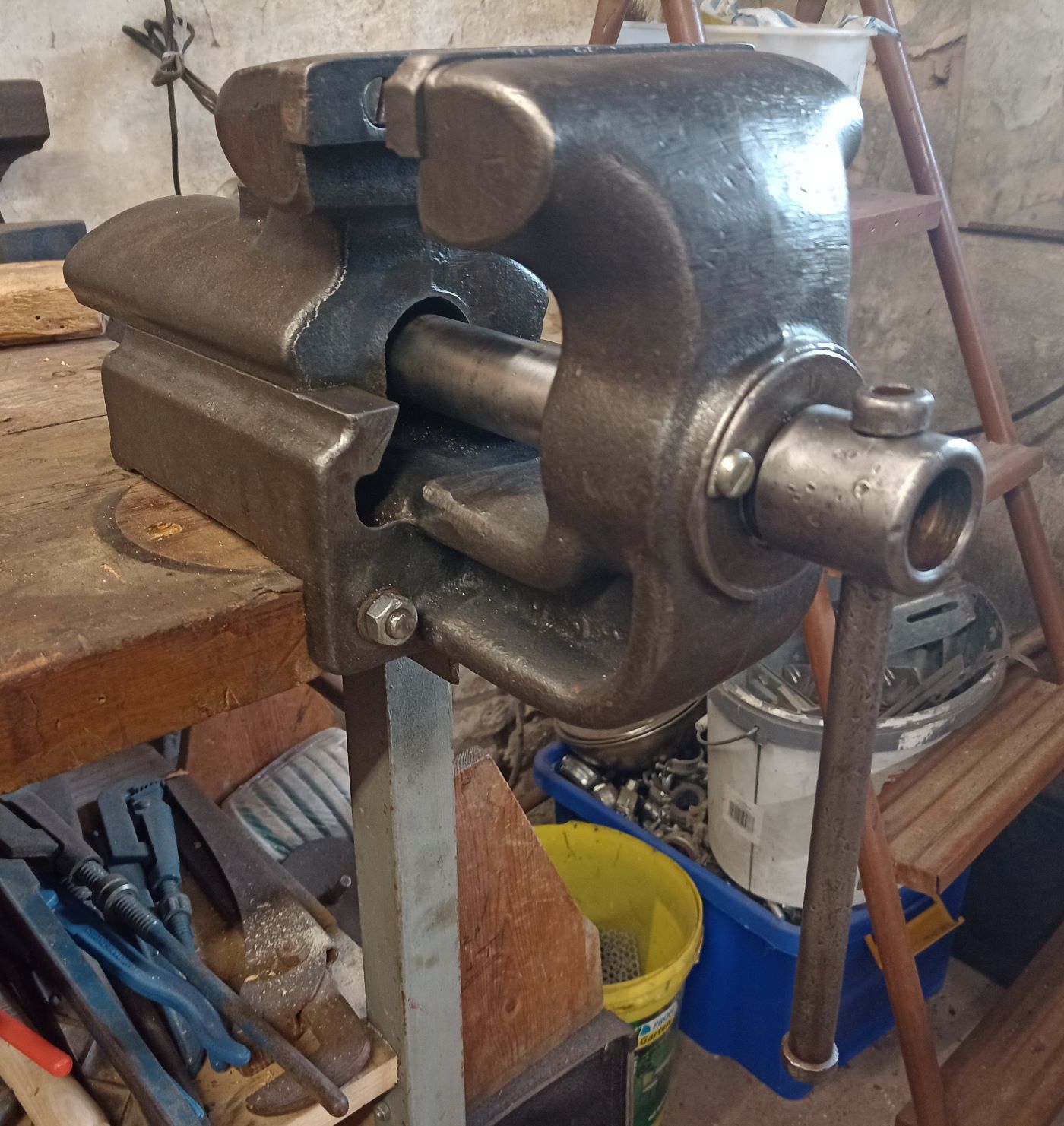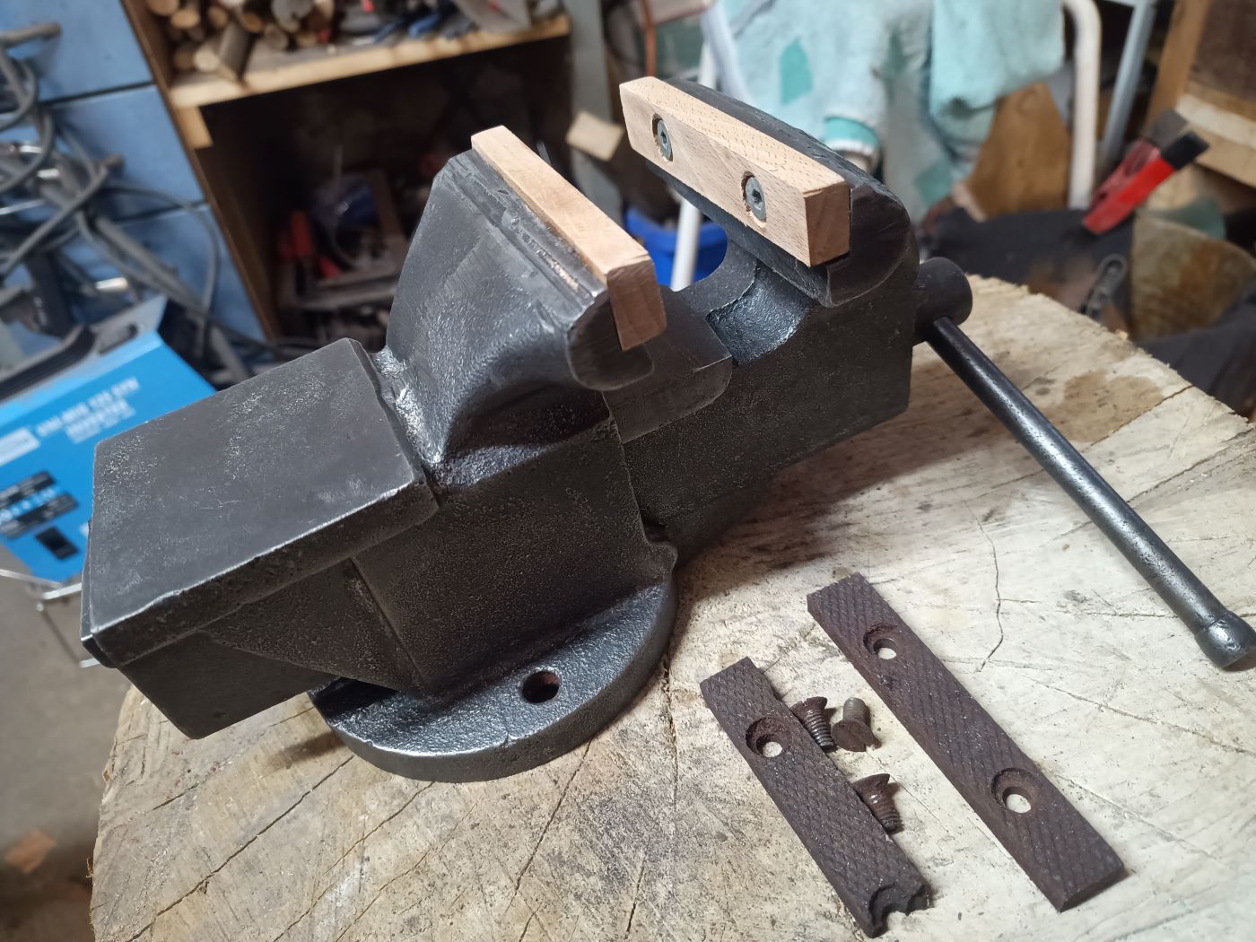 Anbei nun Opas Schraubstock. Ein weiterer Vorteil, in meinen Augen jedenfalls, sind die mitgegossenen Spannbacken.