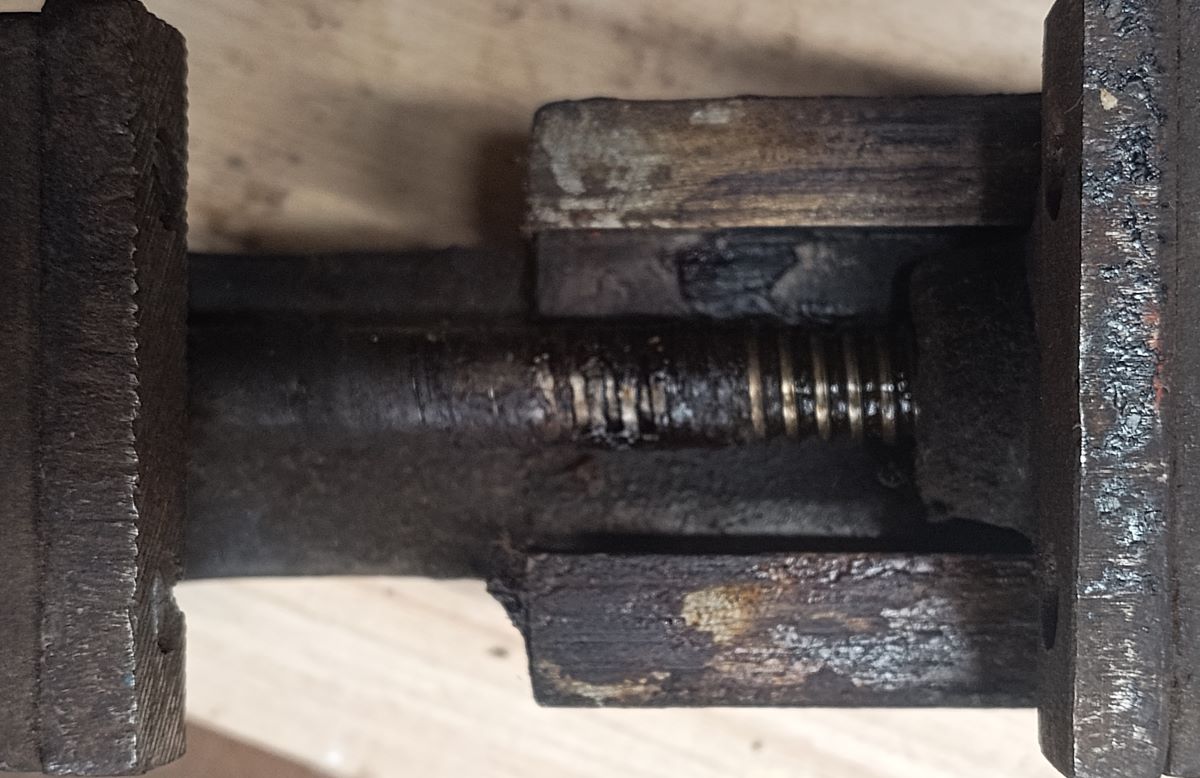 Die Schrauben der Backen wurden an einer von diesen festgeschweißt. Das Entfernen und Neumachen habe ich mir erspart, denn der ganze Schraubstock sollte nicht zu sehr verschlimmbessert werden. Den Kurbelstab musste ich allerdings ersetzen, da der ursprüngliche nicht mehr vorhanden war.