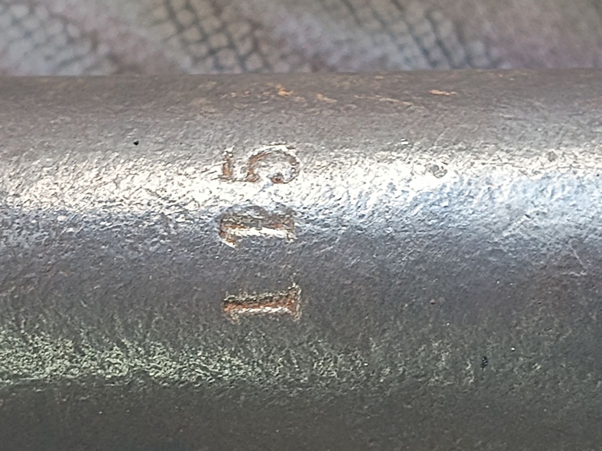 Wie man sieht, ist er von mir äußerlich nicht verschönert worden. Zwar gereinigt und gefettet, aber die Farbschichten sind noch dran. Außerdem hat der Vorbesitzer am Fuß, neben dem Befestigungsloch, anscheinend mehrfach seine Schweißelektrode "gezündet", wobei der unschöne Materialauftrag entstand, siehe letztes Foto. Bisher konnte ich mich noch nicht dazu hinreißen lassen, ihn nach meiner Manier zu überarbeiten. Das lasse ich mir für den Zeitpunkt offen, an dem ich Langeweile habe. Hoffentlich trifft das nie zu!