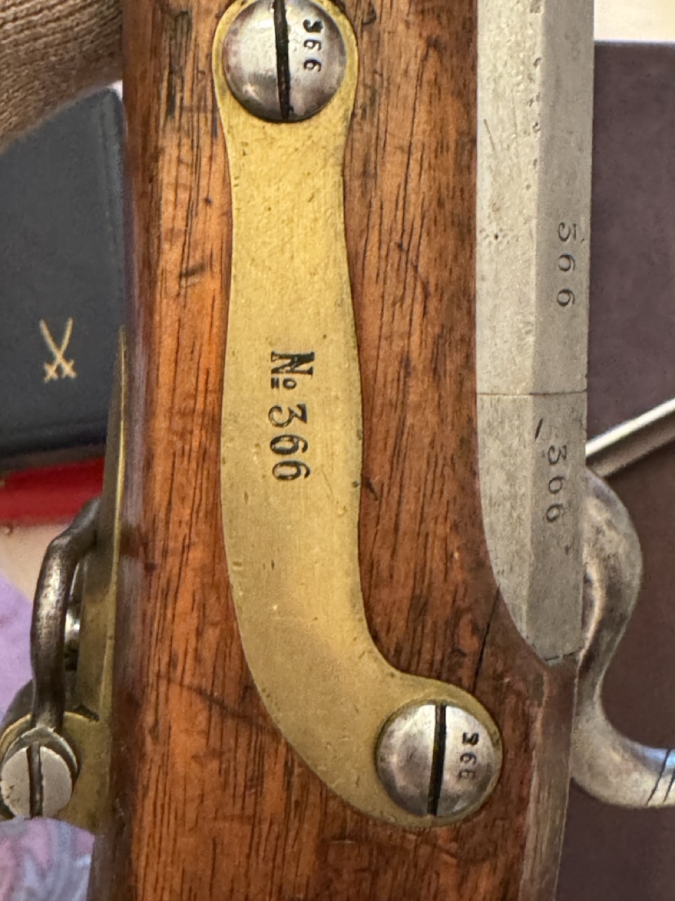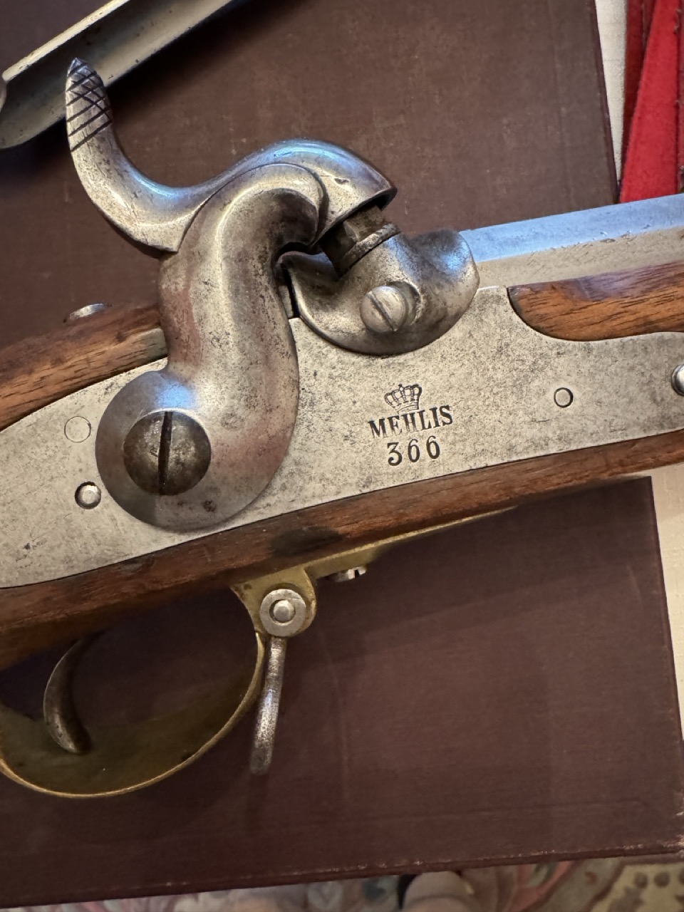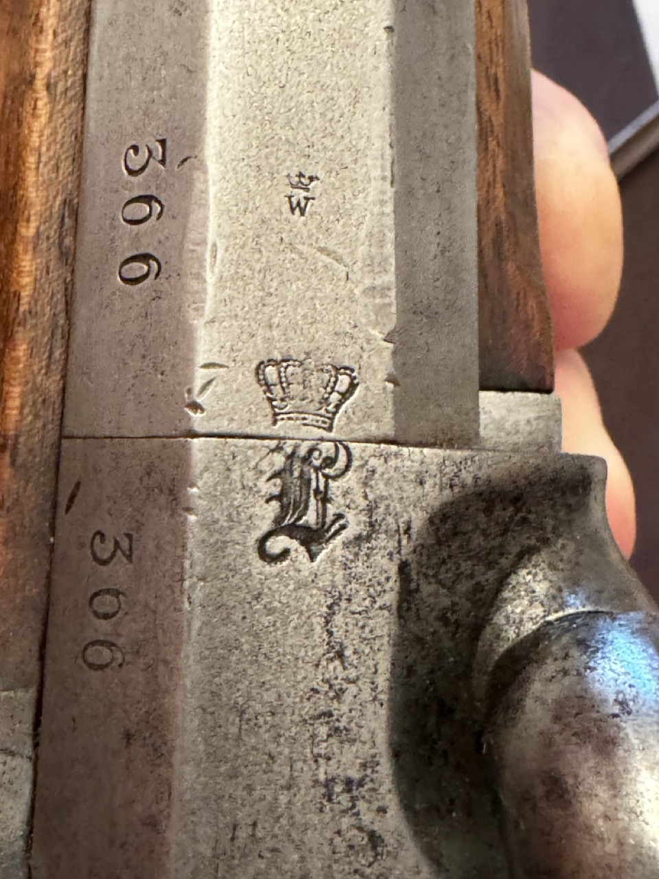 Perkussion. Stempel und gekrönte Chiffre "L" (Leopold IV 1817 - 1871) Schlossplatte signiert "Mehlis" und der Krone u Nummer 366