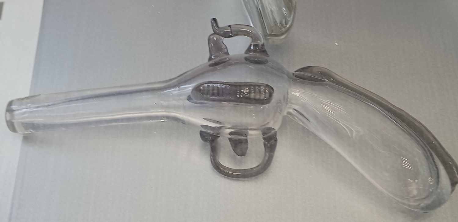 Die Feuerwasserwaffen kommen auch nicht zu kurz. Der Revolver ist, einfach gesagt, eine Schnapspulle und der "Vorderlader" wurde vom Glasbläser privat "geschunden".