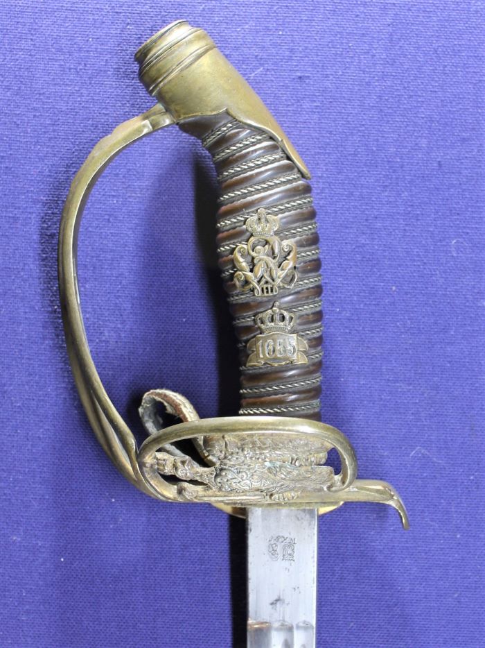 Danke fürs Zeigen. Der Grenadierhelm am Knauf ist wirklich ungewöhnlich. Ich kannte bisher nur Granaten am Knauf als Symbol für einen Grenadieroffizier.
