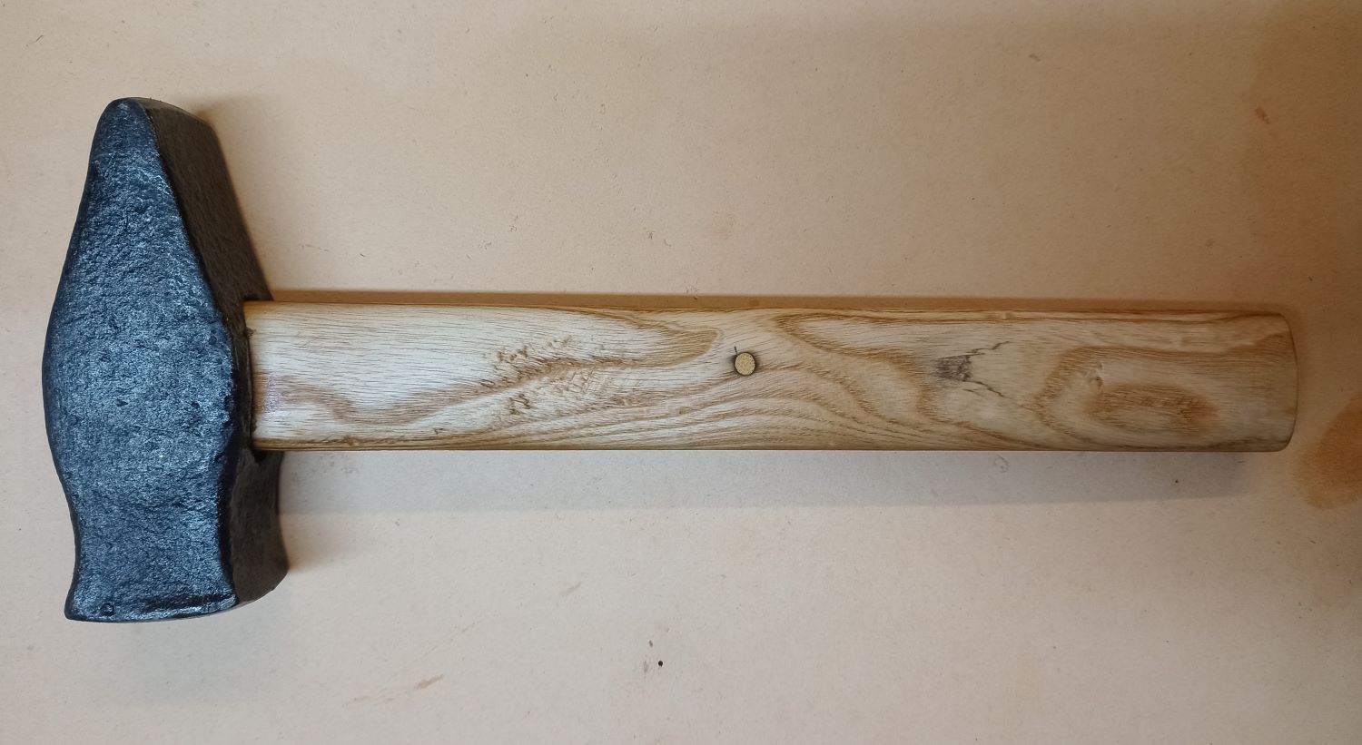 Der Axtstiel ist wohl nur ein Behelf. Ich habe natürlich vermutet, dass es sich um einen Schmiedehammer handeln könnte. Bei mir hier in der Gegend (Brandenburg) sind Schmiedehämmer auf Flohmärkten nicht zu bekommen. Dieser Flohmarkt war in Paderborn. Dort gab es weitaus weniger Werkzeug, dafür aber gleich das "Richtige".