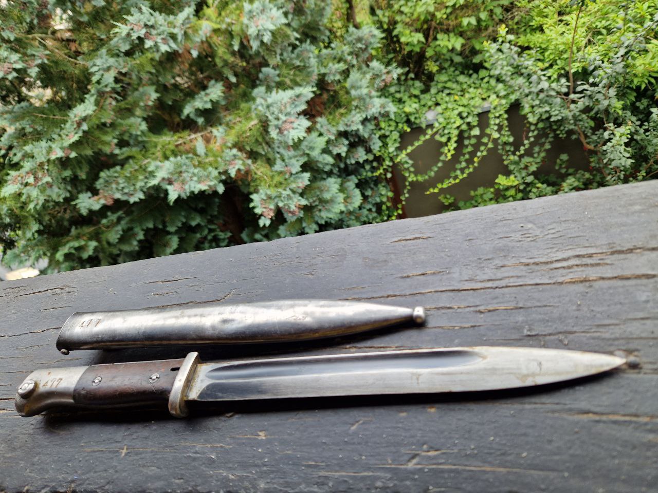 Stücknummer sowohl auf Scheide wie Bajonett versehen wurden: