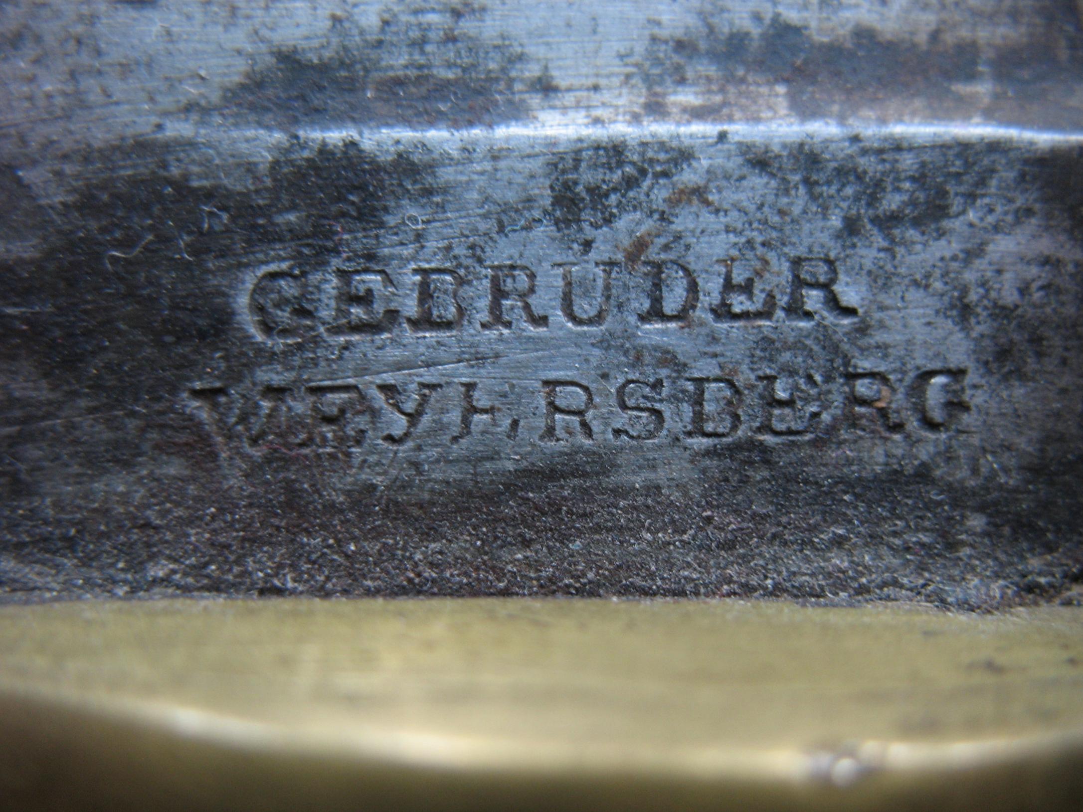 ich besitze einen Säbel der Reichsflotte (1848-1852), der auf der Unterseite der Parierstange dieselbe Markierung aufweist. Meiner Meinung nach hat sich hier der Gelbgießer des Gefäßes verewigt.