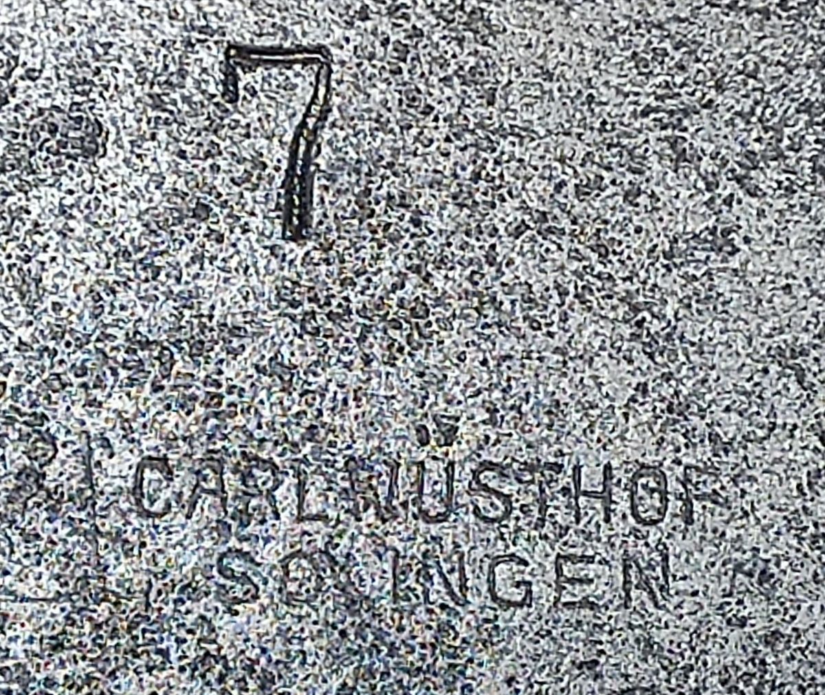 Schöne Stücke, die Ihr hier zeigt und so schön restauriert - vielen Dank für das Zeigen! Hier meines aus "GUSSSTAHL", das ich schon an anderer Stelle einmal vorgestellt habe. Das "waffenaffine" Logo habe ich immer noch nicht auflösen können.