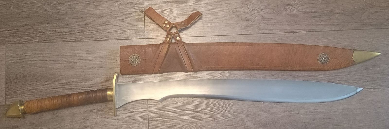 Zum Schwert: Es ist der modifizierte Nachbau eines Schwertes, welches ursprünglich in einer tschechischen Schmiede gefertigt wird. Hier mit eigenen Vorstellungen und Anweisungen von Holger. Darunter eine distale Verjüngung der Klinge und ein "wirksamer" Hohlschliff. Alles in allem eine sehr führige und elegante Waffe, trotz ihres wuchtigen Aussehens. Den Namen Irakzai gab ihm Holger, getauft nach einem Bergvolk aus Robert E. Howards hyborischem Zeitalter (Conan). Für mich ist es ein Orcrist (Orkspalter, aus Herr der Ringe). Ja, so sind wir Schwert-Typen halt.