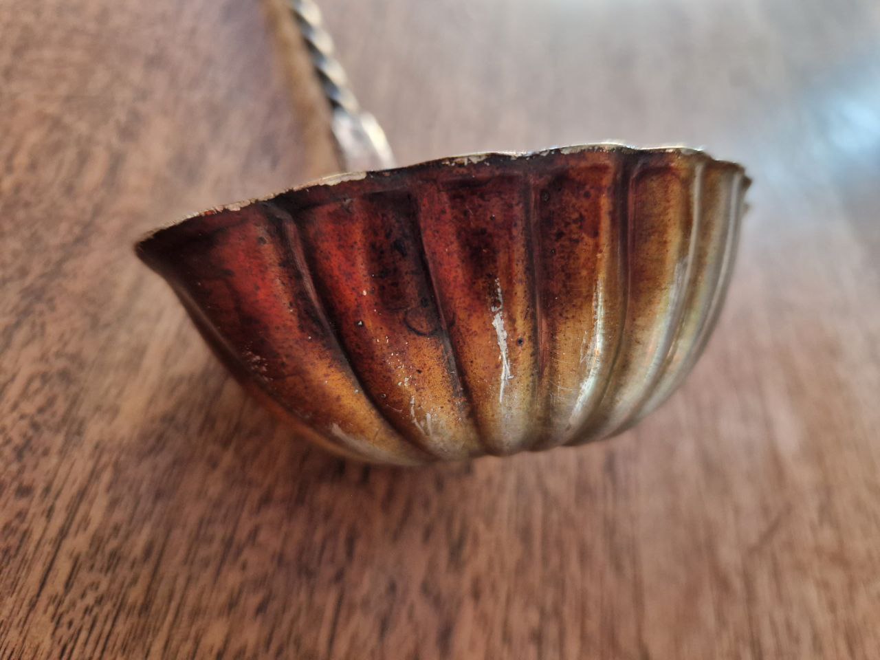 Bilder 3 und 4: Die innenvergoldete Kelle: die Brandspuren hinterlassen eine „Patina“ ganz eigener Art – Spülmaschine ist tabu!
