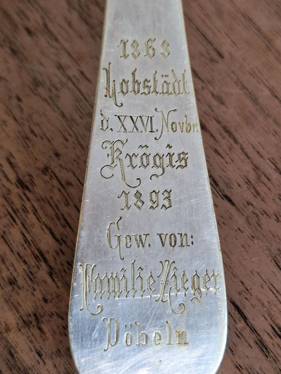 Bild 5: Wer mag diese Gravur enträtseln? Die beiden Jahreszahlen in der Widmung ergeben für mich keinen Sinn – aber tut dem Nutzen keinen Abbruch.