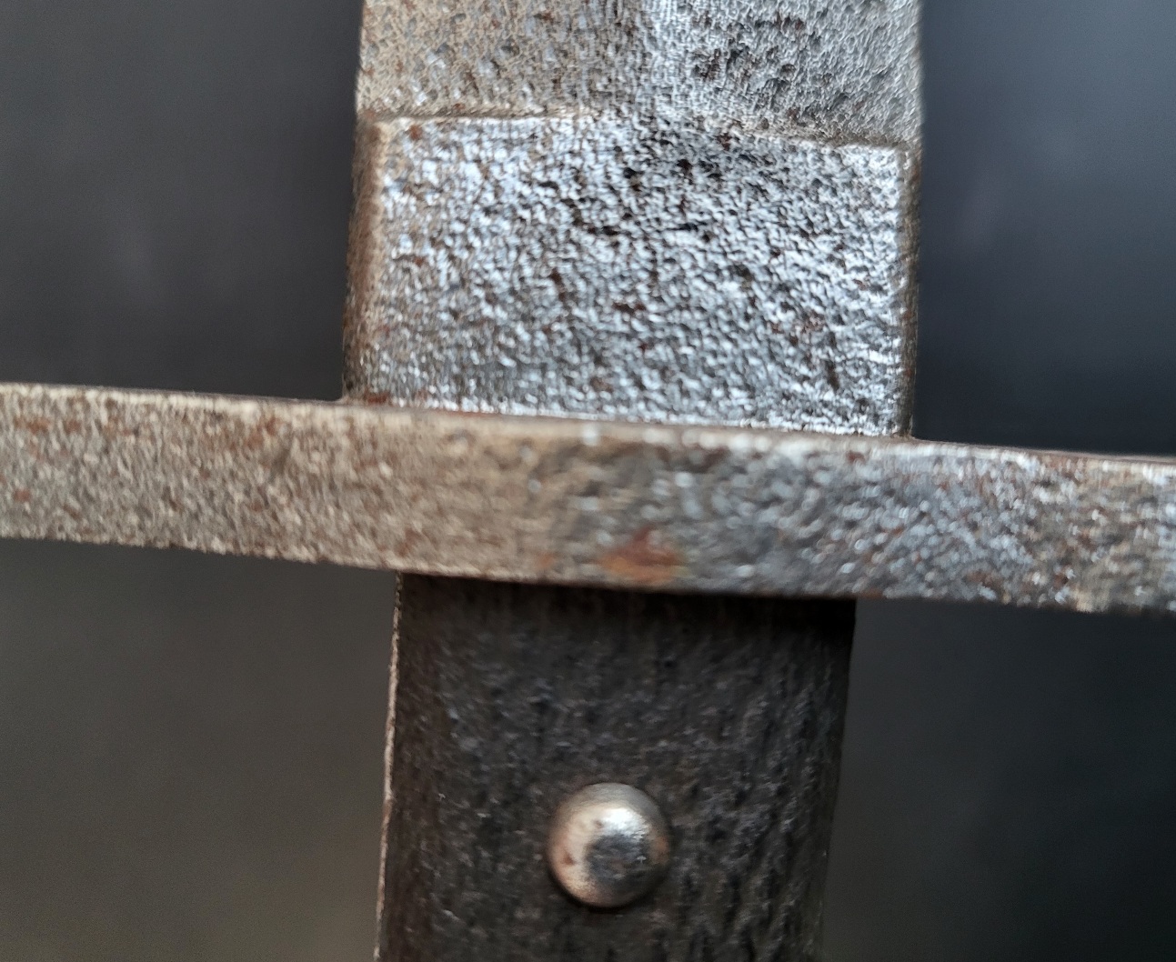 Im MFF hat mich Andy bereits darauf aufmerksam gemacht, dass bei Kulinskij ein ähnliches Stück unter Nr. 446 abgebildet ist, jedoch mit gerader Klinge und vorn mit aufgebogener Parierstange statt mit abgebogener Parierstange wie bei meinem vorliegenden Stück. Auch die Griffschalen könnten ergänzt oder erneuert sein, weil die Niete nicht so stark korrodiert sind wie das eigentliche Bajonett.