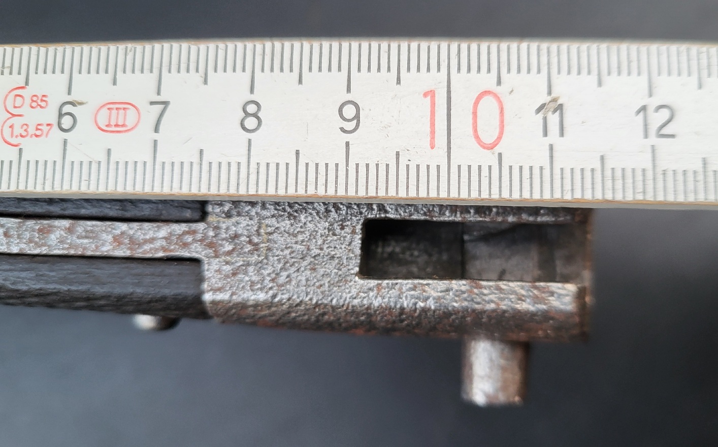 Der Abstand von Parierstange bis zum Drücker beträgt 102 mm, der Abstand von der Parierstange bis zur Aufpflanznut beträgt 91 mm.