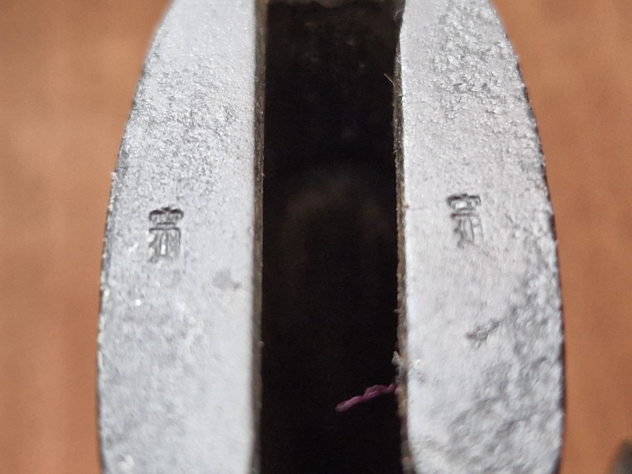 Weiter finde ich die Spitze bzw. dort die Form des Klingerückens bemerkenswert. Diese Form habe ich hier und vom selben Hersteller mit W02 auf dem in Anthony Carters Werk "German Bayonets The Models 98/02 and 98/05" auf Seite 11 abgebildeten Stück gefunden. Auch wenn an Gefäß und Scheidenbeschlägen der Rost etwas genagt hat, kann man viele Abnahmestempel erkennen.
