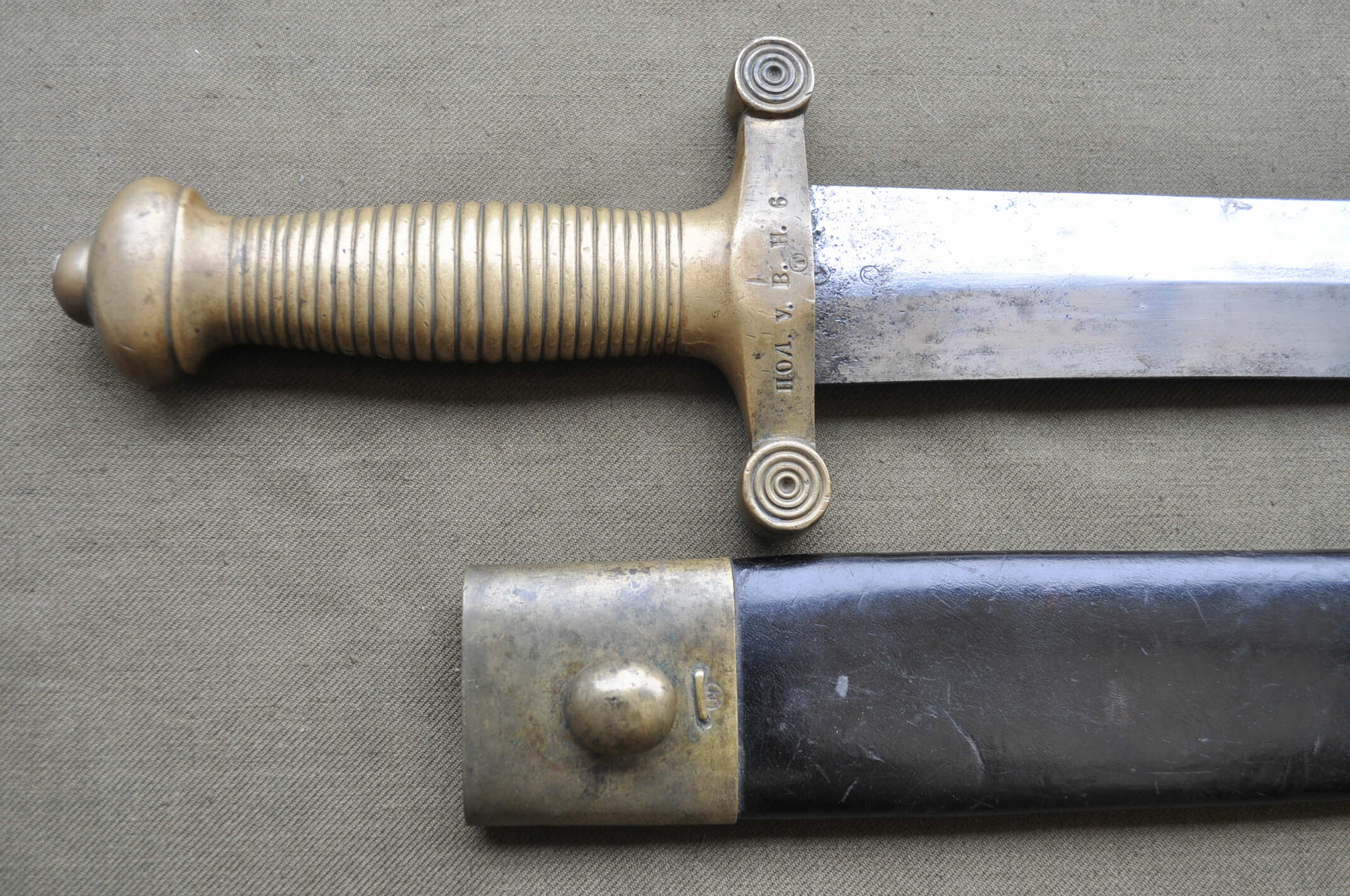 Russ. Faschinenmesser Modell 1834, ähnlich dem franz. Modell 1831 jedoch gerade Klinge.