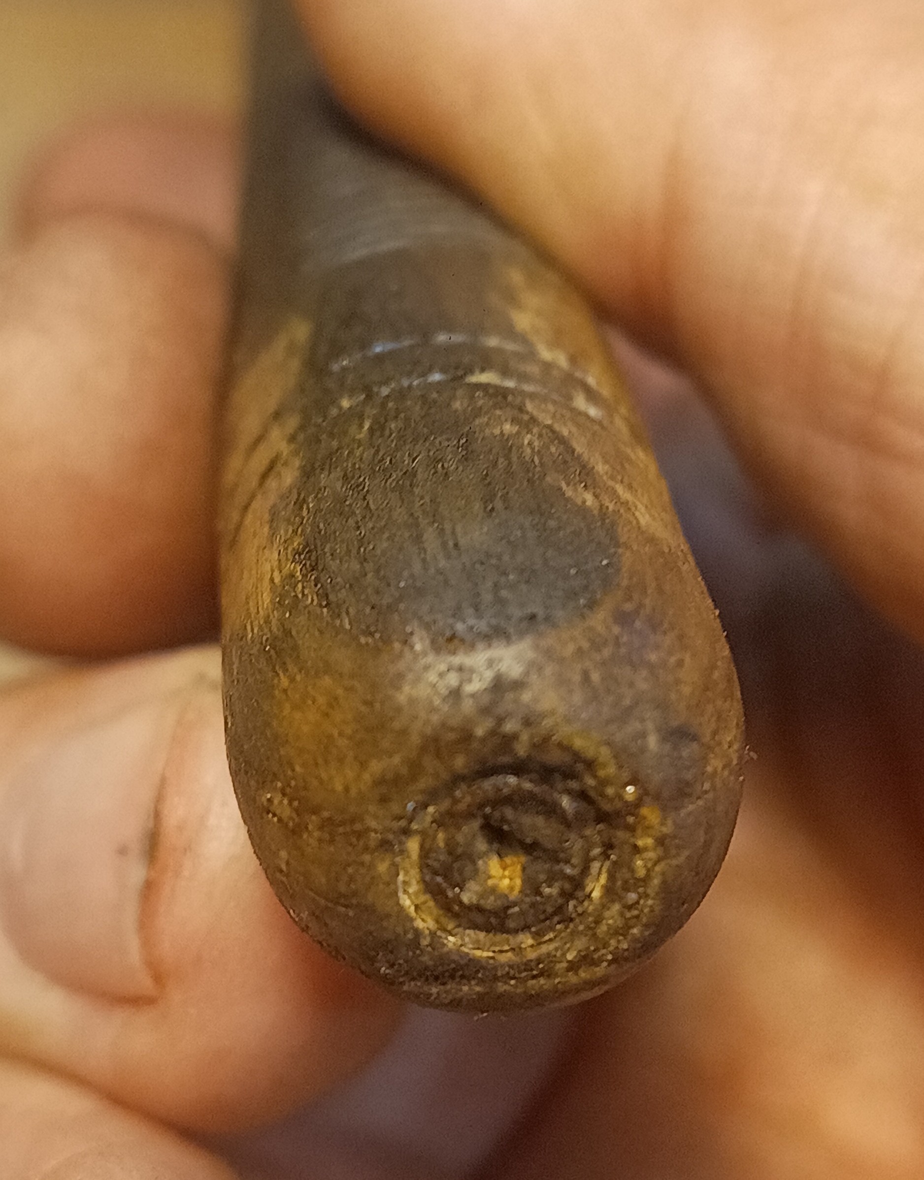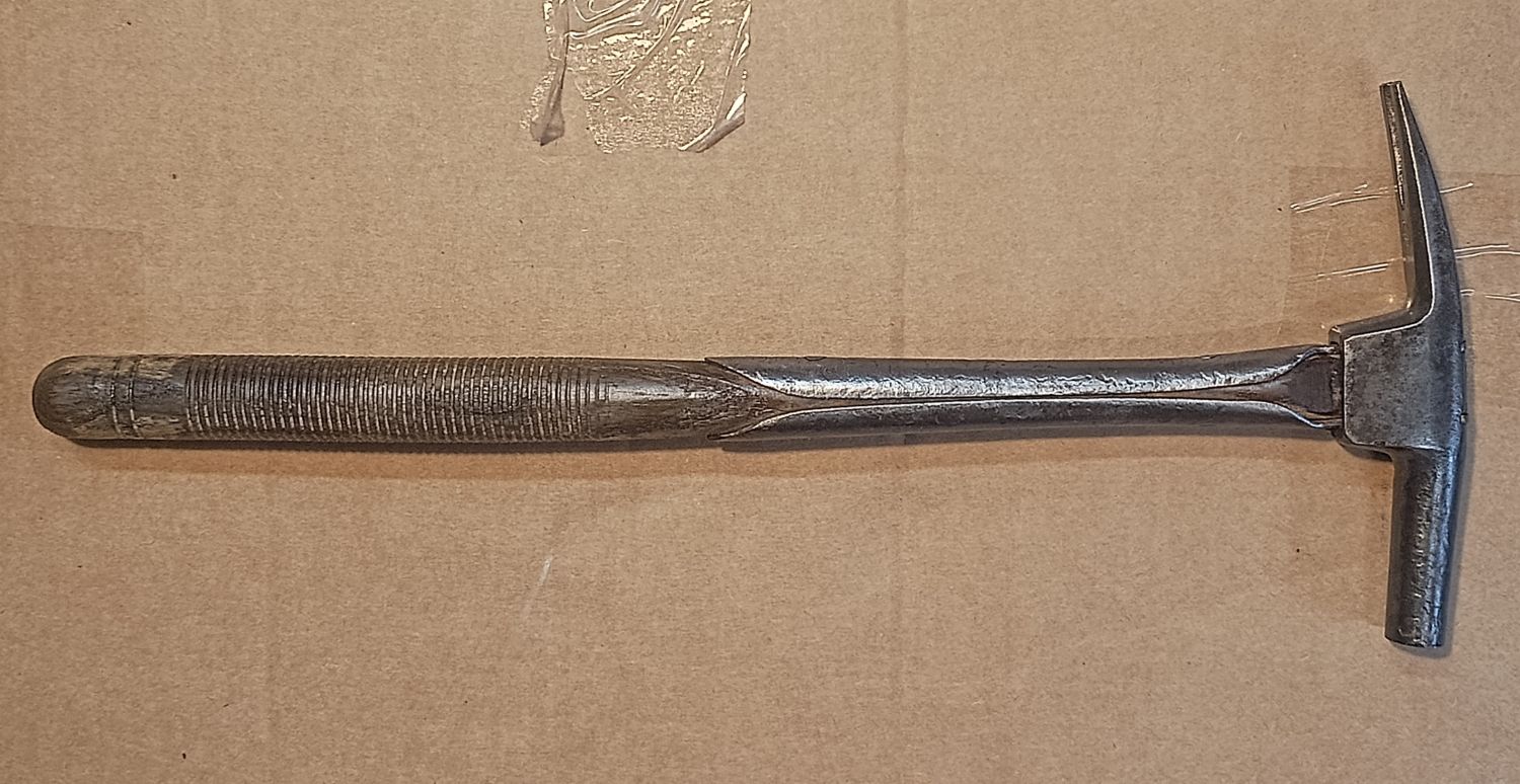 Interessant ist die Stiel-Reparatur. Der Besitzer wollte wohl absolut auf Nummer sicher gehen und hat zusätzlich Schrauben verwendet.