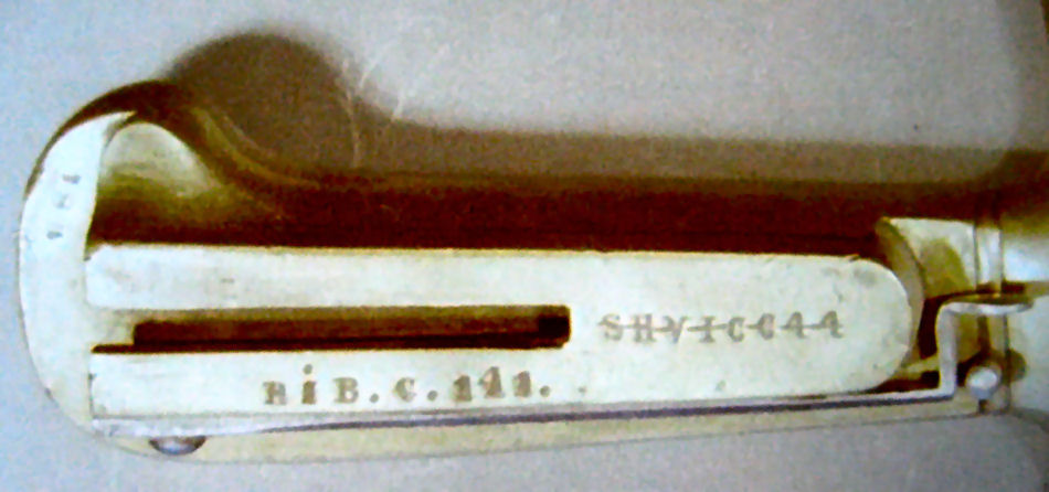 (beide auf dem Mundblech der Scheide eines Feldkonstabler-Säbel 'Feltkonstabelsabel M 1854', vormals schleswig-holsteinischer Säbel für unberittene Artillerie 1849)