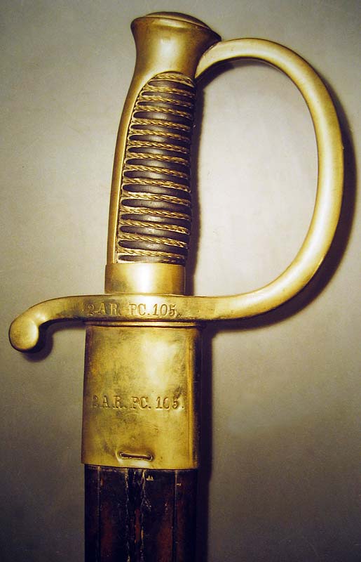2. Artillerie-Regiment, "Pioner-Compagni"(?), Waffe Nr. 105 (auf Feldkonstabler-Säbel 'Feltkonstabelsabel M 1854', vormals schleswig-holsteinischer Säbel für unberittene Artillerie 1849)