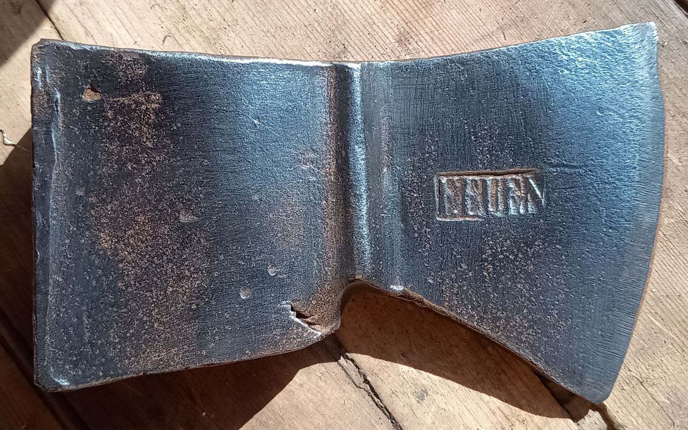 Der Stil war leider verschlissen und da das Beil an sich auch nur noch als Anschauungsmaterial dient, habe ich es nicht mehr neu aufgestielt. Anhand der Fotos kann man einmal schön nachvollziehen, aus wieviel Einzelteilen so ein Beil besteht, Feuerverschweißt und reine Handarbeit. Die Risse und Fugen auf den Fotos sind die Fügungsstellen.