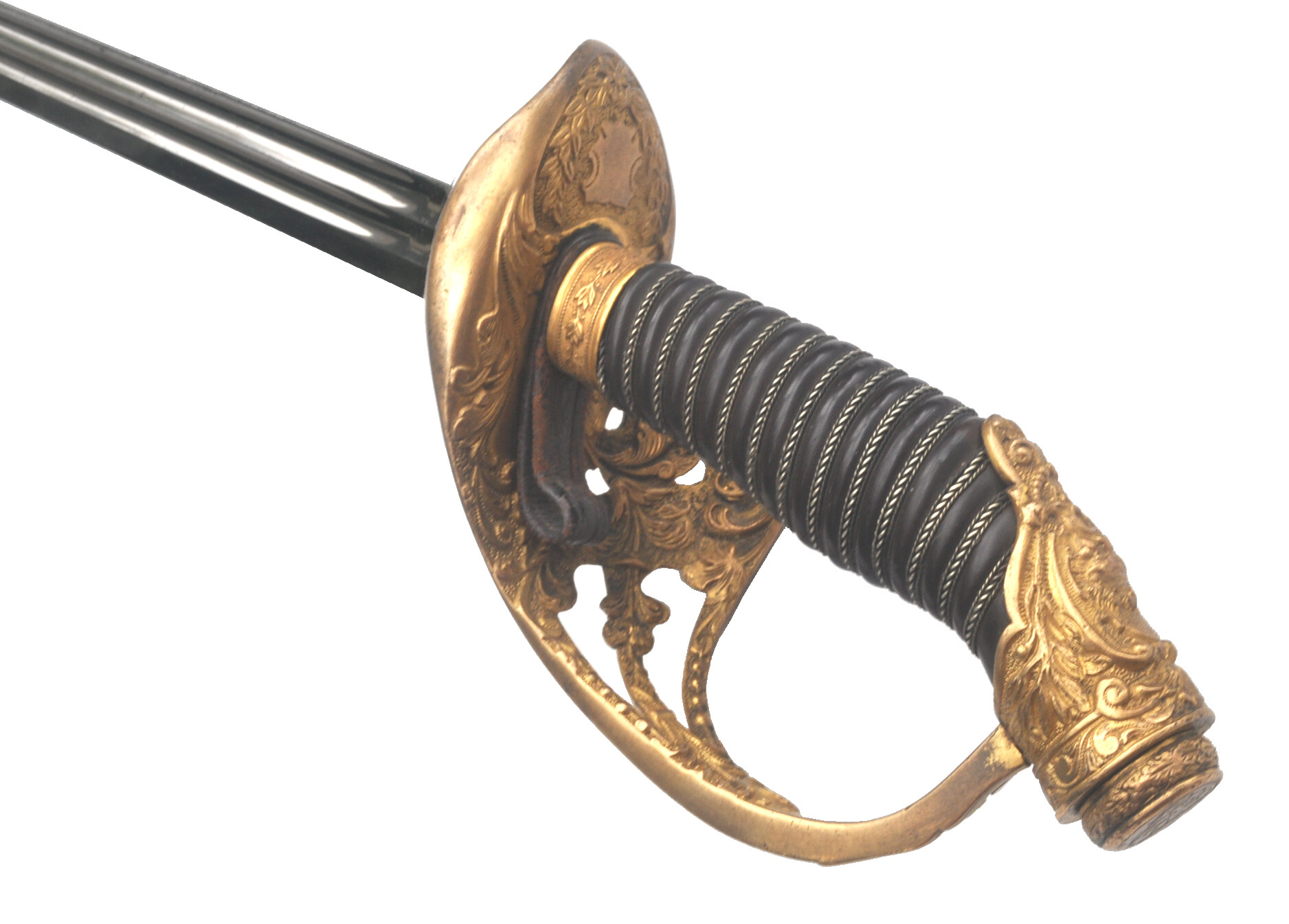 sog. 'fein ciselirte Montur‘, feuervergoldet, mit Griff- und 2 Seitenbügeln