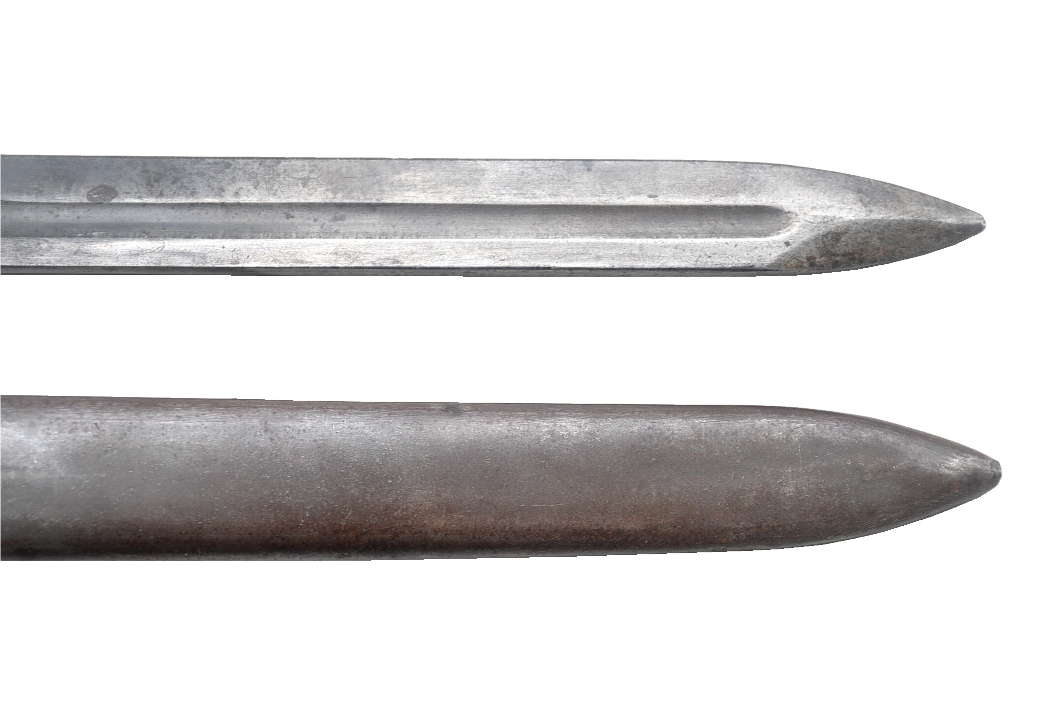 einschneidige, phosphatierte Klinge mit beidseitiger Hohlkehle, Mittelspitze