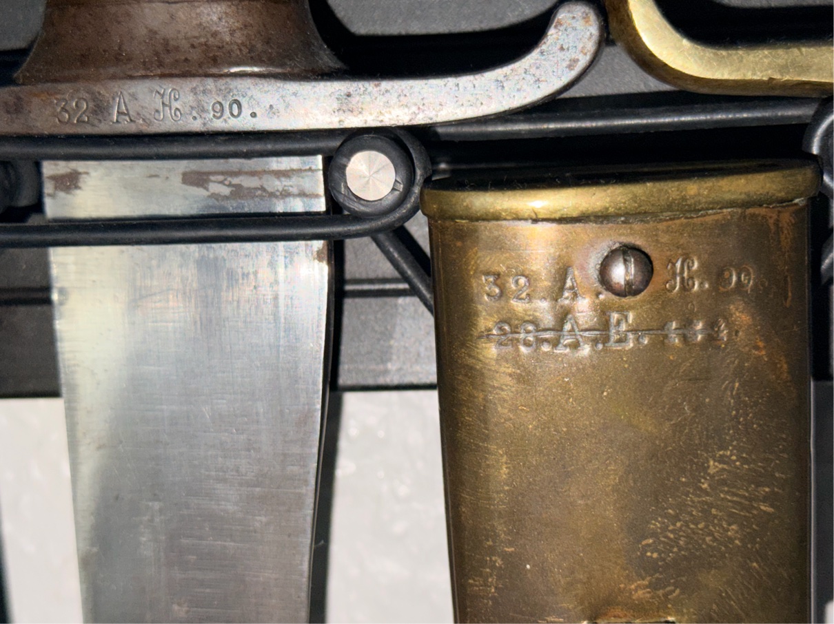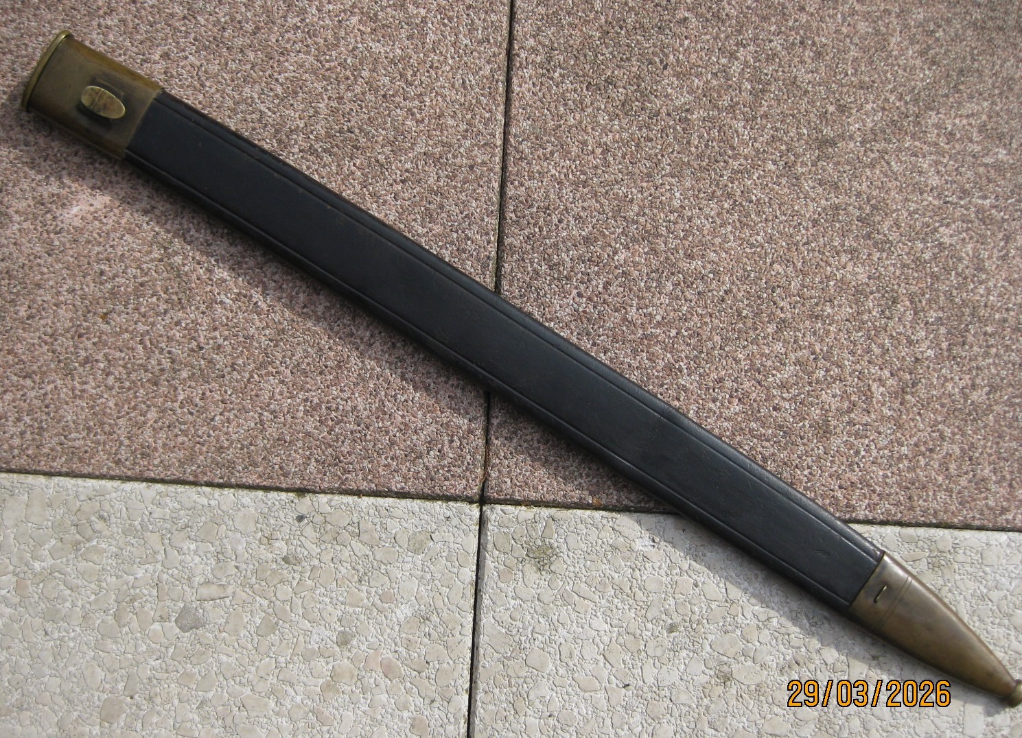 Es handelt sich um eine einzelne Scheide für das o.a. Faschinenmesser, wovon bei den Gebrüdern Weyersberg 1879 4000 Stück gefertigt und an die sächsischen Depots ausgeliefert wurden.