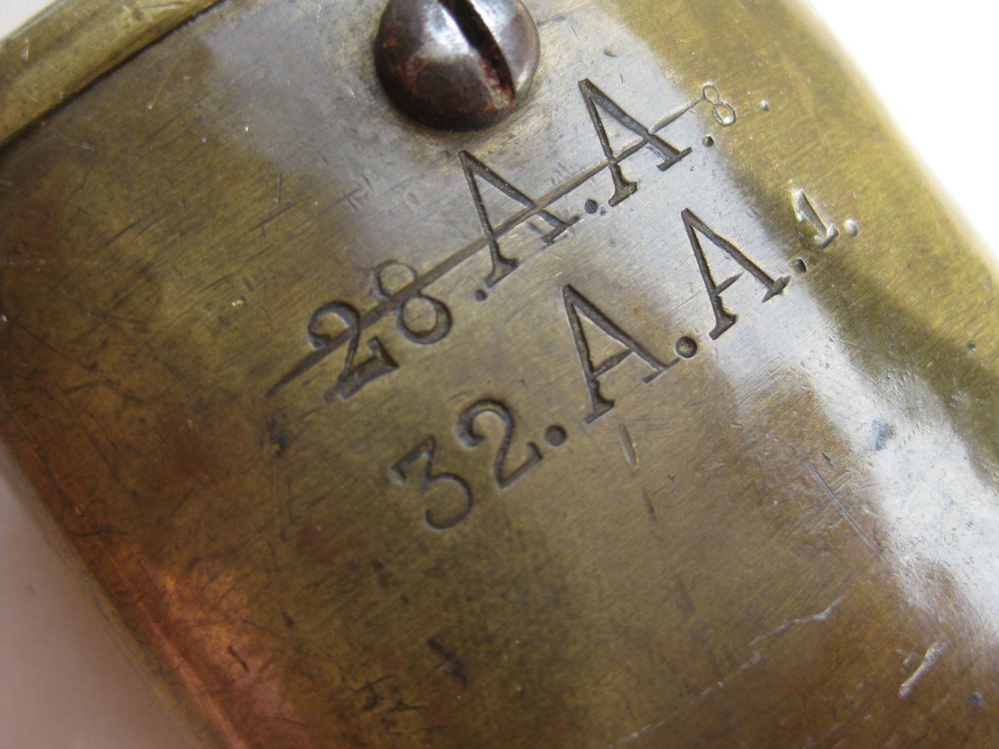 Diese sind Alle mit A bzw. AR gestempelt. Hier hingegen findet sich die Doppelstempelung A.A. für Artillerieabteilung. Vielleicht kann Jemand dazu eine Erläuterung einpflegen verwirt