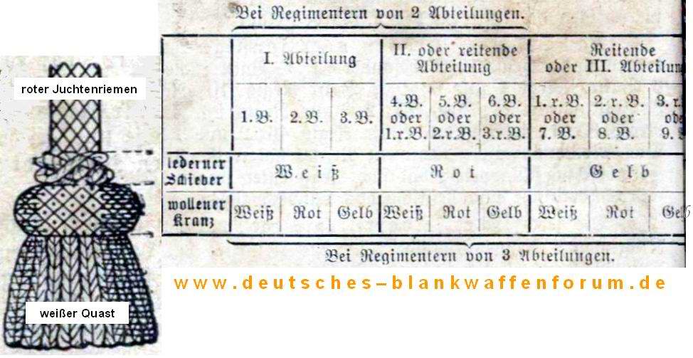 Die Säbeltroddeln der Fußmannschaften (preußische Artillerie, um 1909)