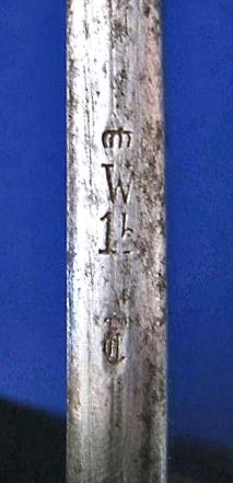 Vier Abnahmestempelchen am Degen könnte ich Dir noch zeigen, die sitzen da, wo man sie vermutet. Auf der Scheide ist nichts zu sehen, Truppenstempel hat sie nicht, da, wo der Abnahmestempel sitzen könnte, sitzt der Rost. Ich glaube aber nicht daran, denn sie hat zwei Trageringe.