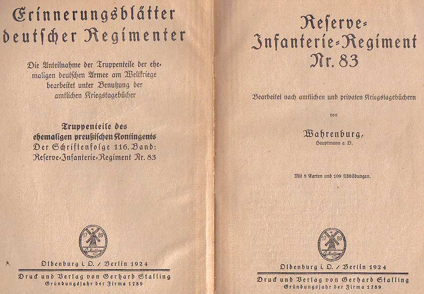Ausfühliche Regimentsgeschichte der Kasseler "Reserve-83er" 1914-18 aus der Reihe: