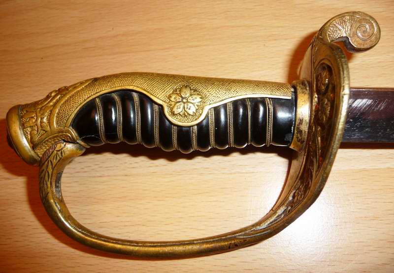 Das Motiv der strahlenden Sonne oberhalb des Blütenmotivs ist übrigens charakteristisch für Polizeisäbel und in verschiedenen Variationen dokumentiert.