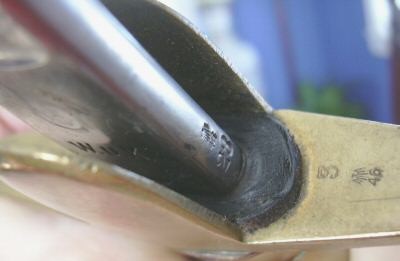 Nun moechte ich auch noch einmal den Stempel auf meinem Saebel zeigen. Obwohl durchgehend mit Abhnahmestempeln versehen, hat der Saebel keine Truppenstempel.