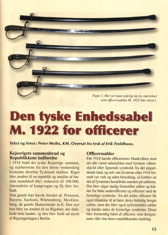 "Den tyske Enhedssabel M. 1922 for officerer"