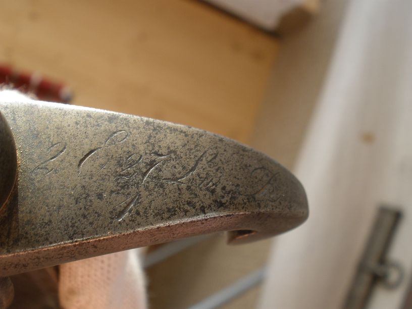 Schleppblech und Klingenrücken sind mit einem überkröntem FW und darunter eine 38 gestempelt. Auf der Pariestange erkenne ich noch "2 E 27 Lw R" und darunter eventuell eine 4.