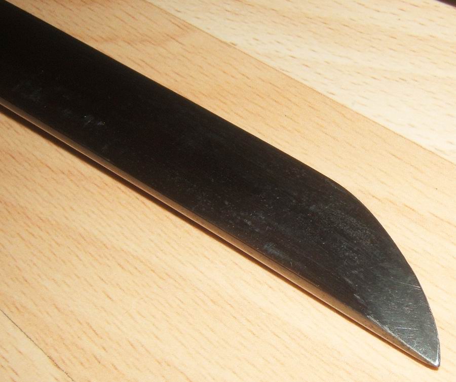 In der Form wie die Klinge von Wakizashi oder Katana. Die Angel wurde am Ende mit einem Gewinde für die Angelmutter versehen.