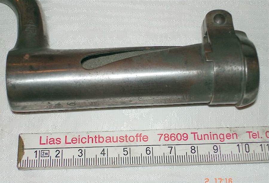 ich habe dieses Stück zusammen mit drei anderen Blankwaffen bei der Renovierung eines Hauses, unter den Dielen zwischen den Balken gefunden. Alle drei Stücke waren sauber in Ölpapier eingeschlagen. Renoviert habe ich 1990. Da unter anderem auch ein SA Dolch mit dabei war und wir das Gebäude seit 1980 nutzen, denke ich kann man das Datum der Deponierung ordentlich zwischen 1945 und 1980 festlegen. Das vorliegende Bajonett hat eine Gesamtlänge von 79cm. 66cm alleine ist die Klingenlänge. Die Klinge ist beidseitig hohl geschliffen und sehr scharf. Der Durchlass der Tülle ist ca. 25mm. Das Bajonett steckte in einer Holzscheide mit genähter Lederhülle, Messingmundstück und Messingspitze. Mich würde die Meinung der Experten interessieren, um was es sich hierbei handelt. Vielen Dank im voraus.