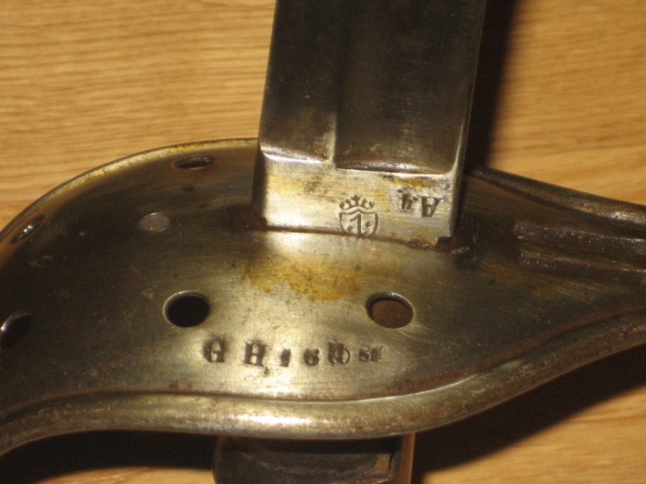 Der Truppenstempel am Säbel steht für die "Großherzoglich Hessische 1. 6(?) Pfünder-Batterie und die Waffen Nummer 5.