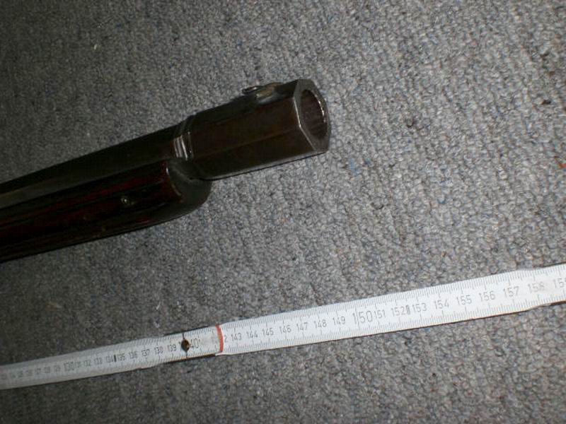 Leider kann ich die drei Laufstempel nicht eindeutig erkennen, auch nicht in der Vergrößerung, aber alleine die Art ihrer Anbringung auf dem Lauf in der Form eines Dreicks läßt mich vermuten, dass der Büchsenmacher einen aus Spanien stammenden Lauf verarbeitet hat. Das aber ist nur eine Vermutung.
