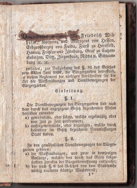 Reglement für die Waffenübungen und Dienstbewegungen der Bürgergarden in Kurhessen, vom 23sten November 1835