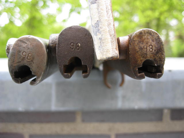 Da der Sitz auf dem Gew.88 nicht sicher genug war ,hat man die mit 98 gestempelte Variante für den 88`er umgeändert -- untere Ausführung.Vielleicht gibt es auch noch andere Meinungen?