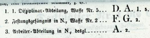 Unbeachtet bleibt meistens des Thema „Festungsgefängnis“. Diese Anstalt wurde zur Verbüßung von Gefängnisstrafe bei Offizieren stets, bei Unteroffizieren und Gemeinen jedoch erst ab einer Dauer von mehr als sechs Wochen benutzt.