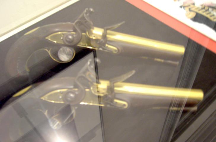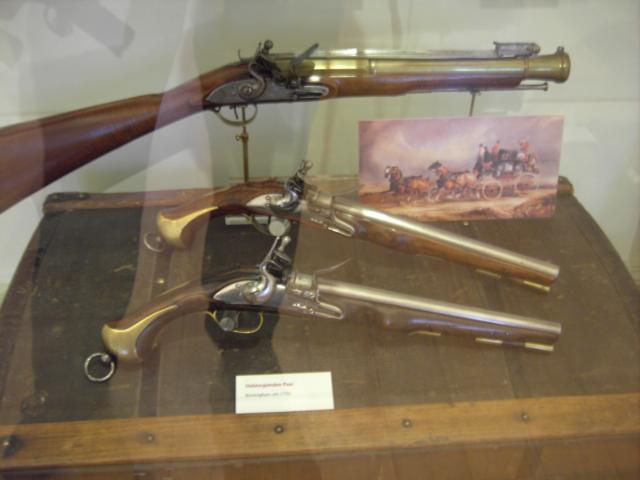 und weiter geht's. Die beiden leider nur schlecht erkennbaren Pistolen im zweiten Bild von links gehörten Sir Thoma Hardy, dem Kapitän der VICTORY während der Schlacht von Trafalgar, bei der Nelson den Tod fand. Für mich ist das fassbare Geschichte..........