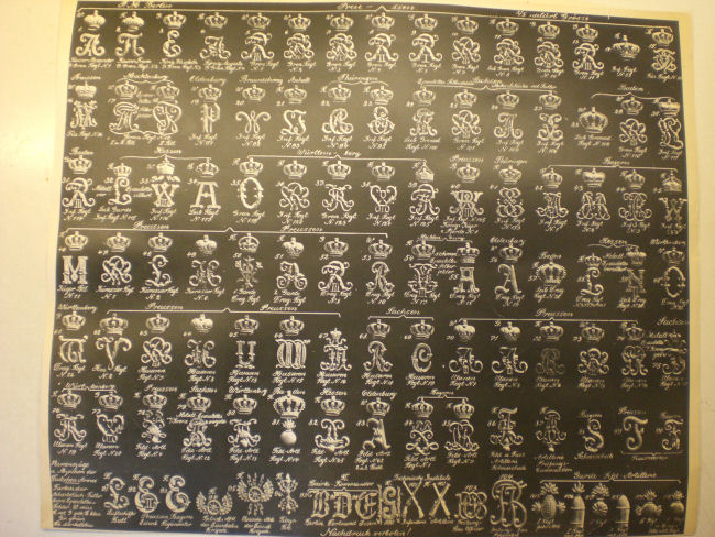 Die bildlichen Darstellungen der Tafeln I. - III. Helmwappen der Deutschen Armee. Tafel IV. Namenszüge und Abzeichen der Deutschen Armee. möchte ich dem Forum vorstellen. Jede Tafel, ist am oberen Rand jeweils mit P. M. Berlin gekennzeichnet. Grundmaterial Karton, im Format 37.5 x 31 cm. Tafel I. Infanterie, Tafel II. Kavallerie, Tafel III. Artillerie - Train - Pionier - Jäger - Schützen - Maschinengewehr - Abteilung - Eisenbahn - Regt. u. Telegr. Batl. Tafel IV. Namenszüge u. Abzeichen der Deutschen Armee. Farben der Achselstücke - Futter bezw. Epaulettes - Felder: W. weiss, R. rot, G. gelb,B. blau, Gr. grün, Du. dunkelgrün. Alter und Zustand der Tafeln, lassen keinen Zweifel bezüglich der Originalität aufkommen. Seit Jahren in meinem Besitz. Verkaufsvorlagen für den Händler !? Vielleicht, kann jemand aus dem Forum die Herkunft u. Verwendung mitteilen. Gruß, sonjar
