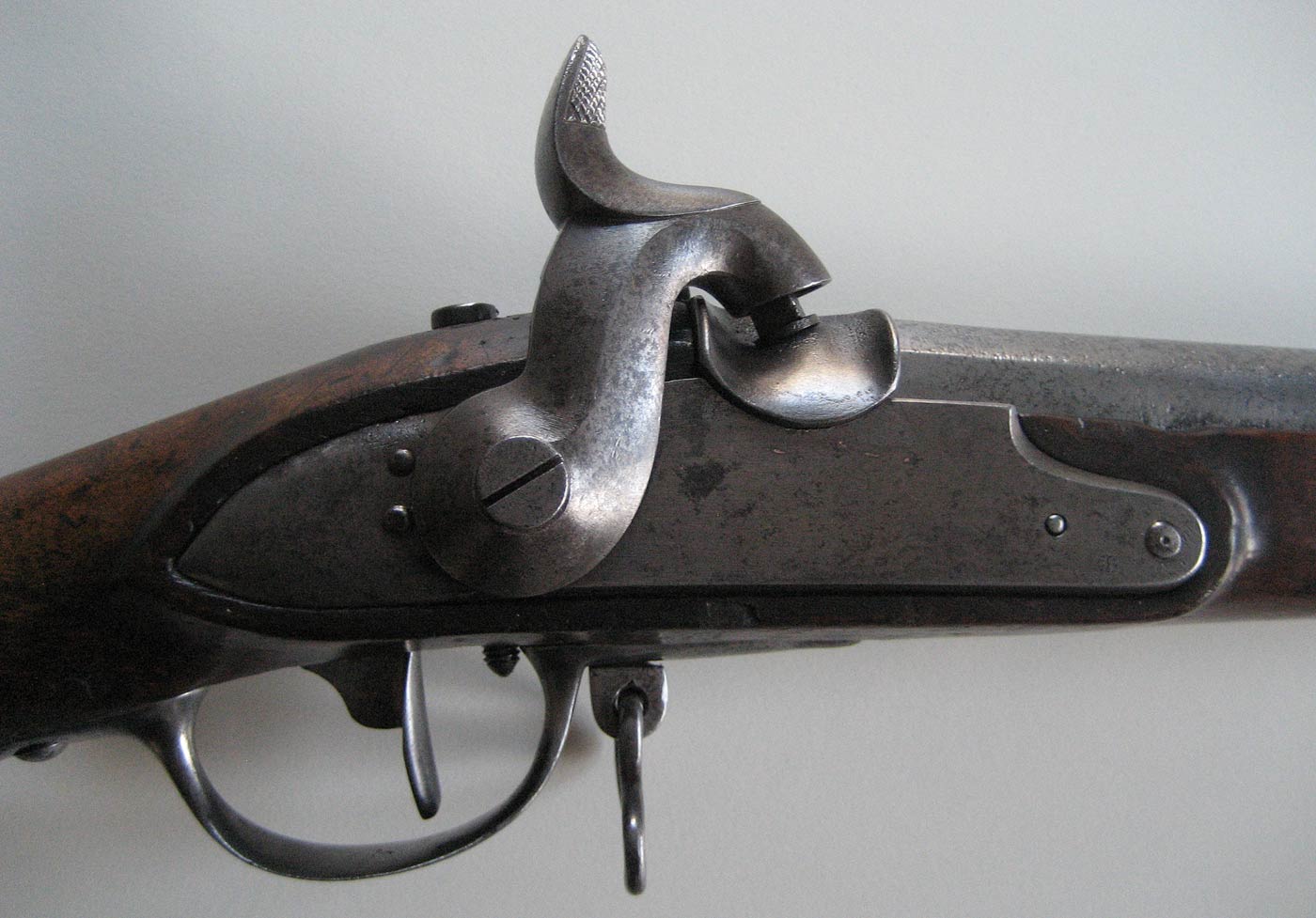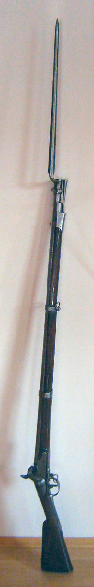 Gefertigt wurde es in Frankreich, wo zur napoleonischen Zeit, als durch die vielfältigen Kriege ein enormer Bedarf an Waffen bestand, alles, was man bekommen konnte oder in den Arsenalen hatte, zu Ordonnanzwaffen zusammengebaut wurde. Daher erklärt sich der Umbau des Laufes von Stift- auf Ringbefestigung.