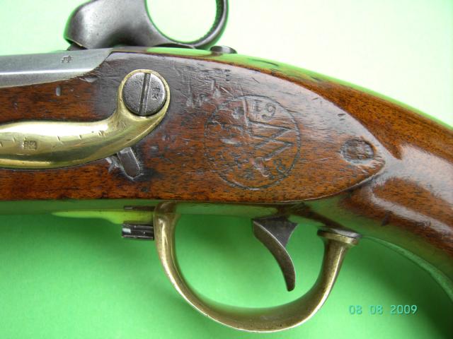 Die Waffenausrüstung für die Kolonialtruppen wurde im allgemeinen in Meesters Cornelis auf Java bewerkstelligt, wo die vorhandenen Steinschlosswaffen auf das Perkussionssystem umgeändert wurden. Gleichzeitig aber hat man im Heimatland, im Maastricht, Lüttich und Delft für Waffennachschub gesorgt. Die vorliegende Pistole aus Delfter Fertigung zeigt die Abnahmestempel von Delft 1861, sowie die staatliche Endabnahme „W“ im Kreis (König Willem). Kontrolleur der Waffe war im Jahr 1860 „LT“ = J.L. Thonus.